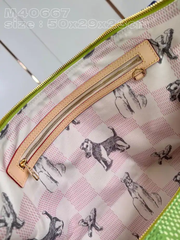 Discover the perfect blend of style and practicality with the KEEPALL BANDOULIERE 50 BAG GREEN DAMIER GOLF COATED CANVAS M40667