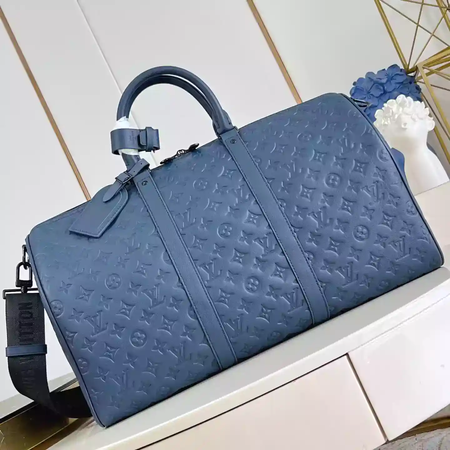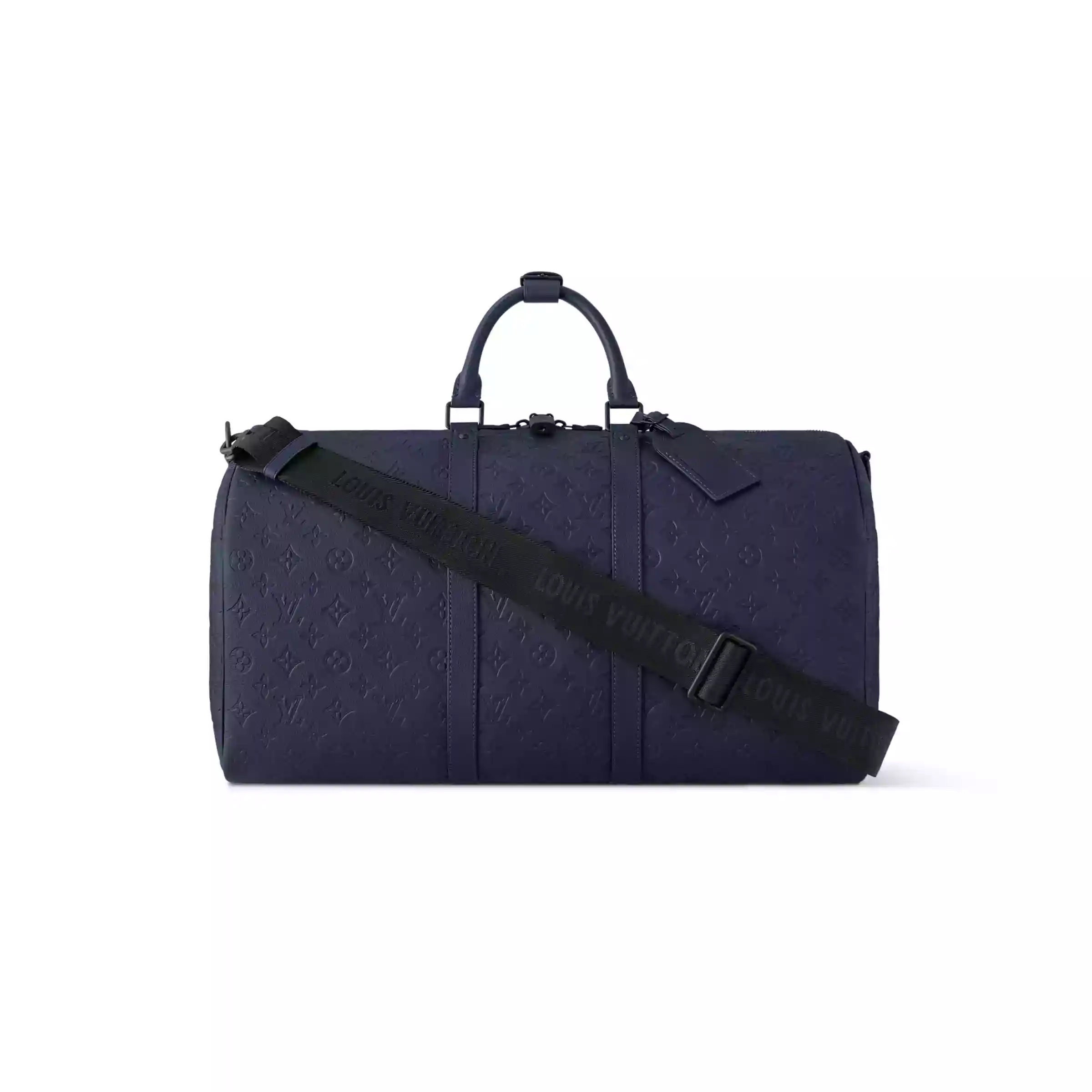 Discover the timeless elegance of the Keepall Bandoulière 50 Bag in Navy Blue Monogram Shadow.