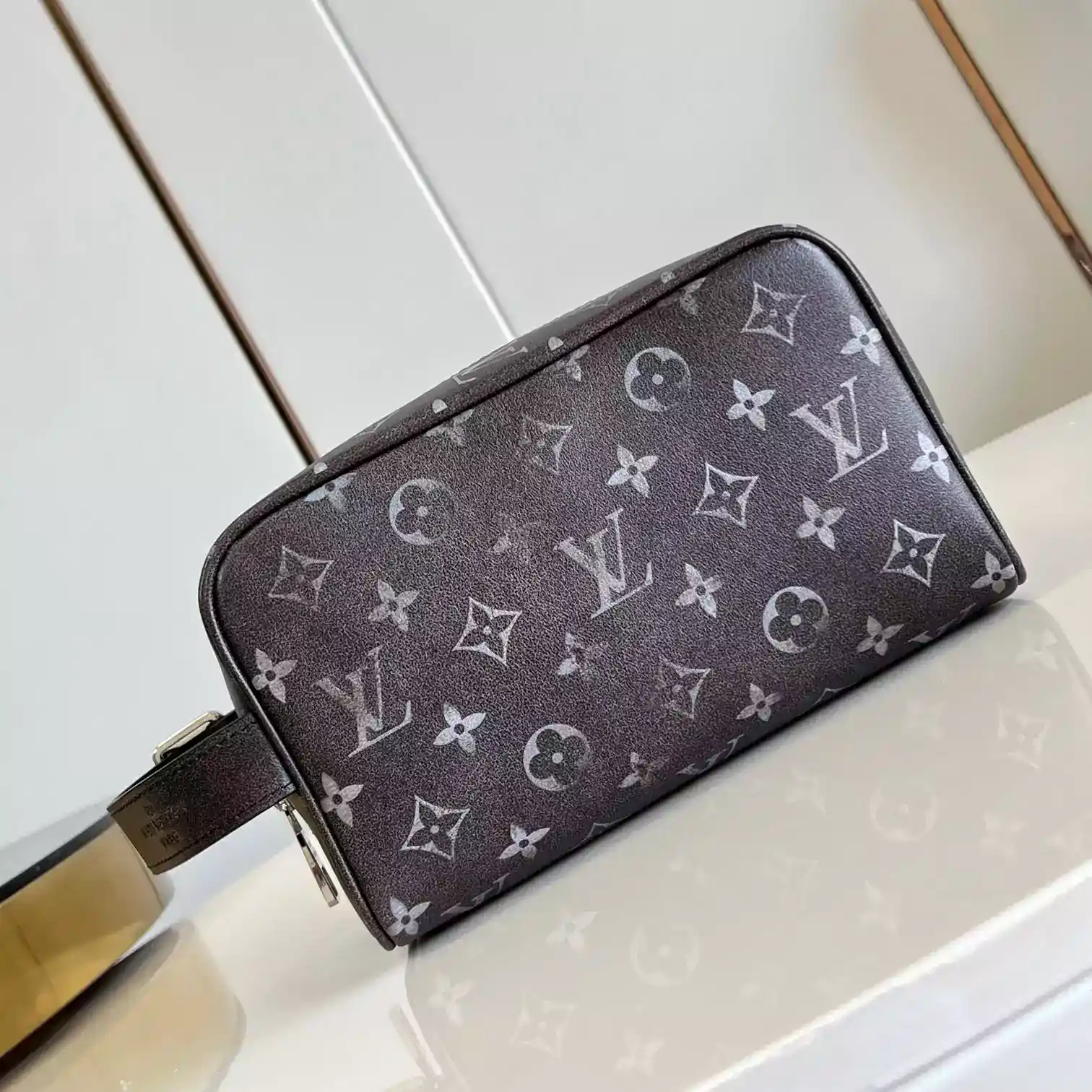 LOCKER DOPP KIT BLACK BRUSHED MONOGRAM COWHIDE LEATHER M11670 ; LW399