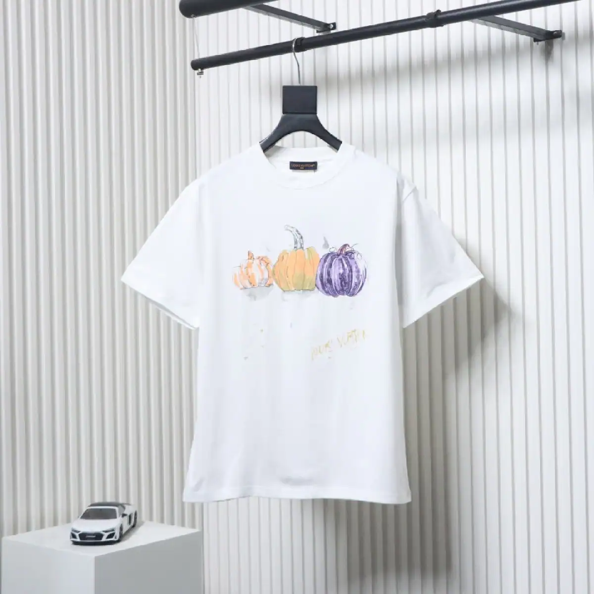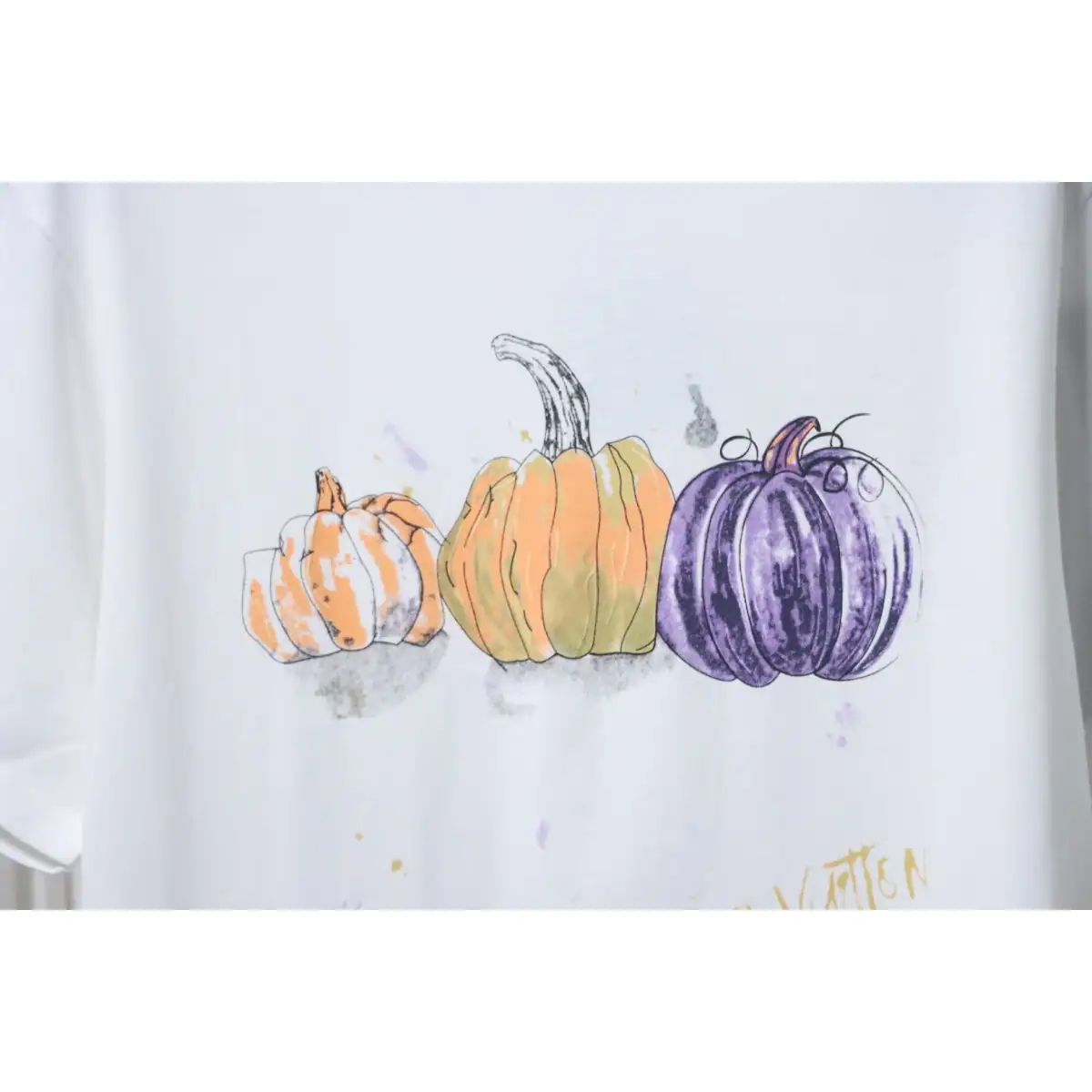 LOUIS VUITTON 25SS GRAFFITI HAND-PAINTED PUMPKIN PRINT T-SHIRT WHITE ; LVTS186