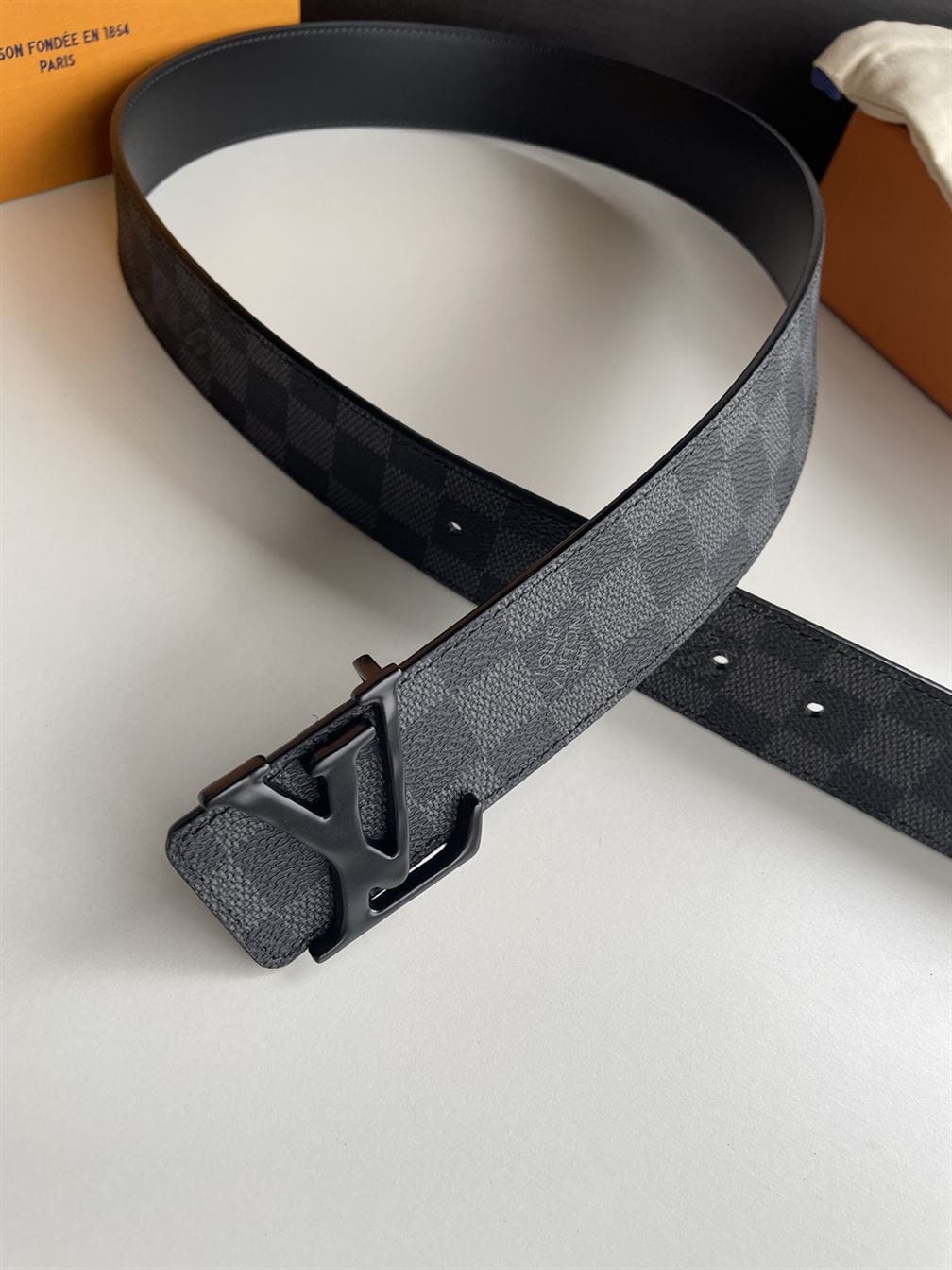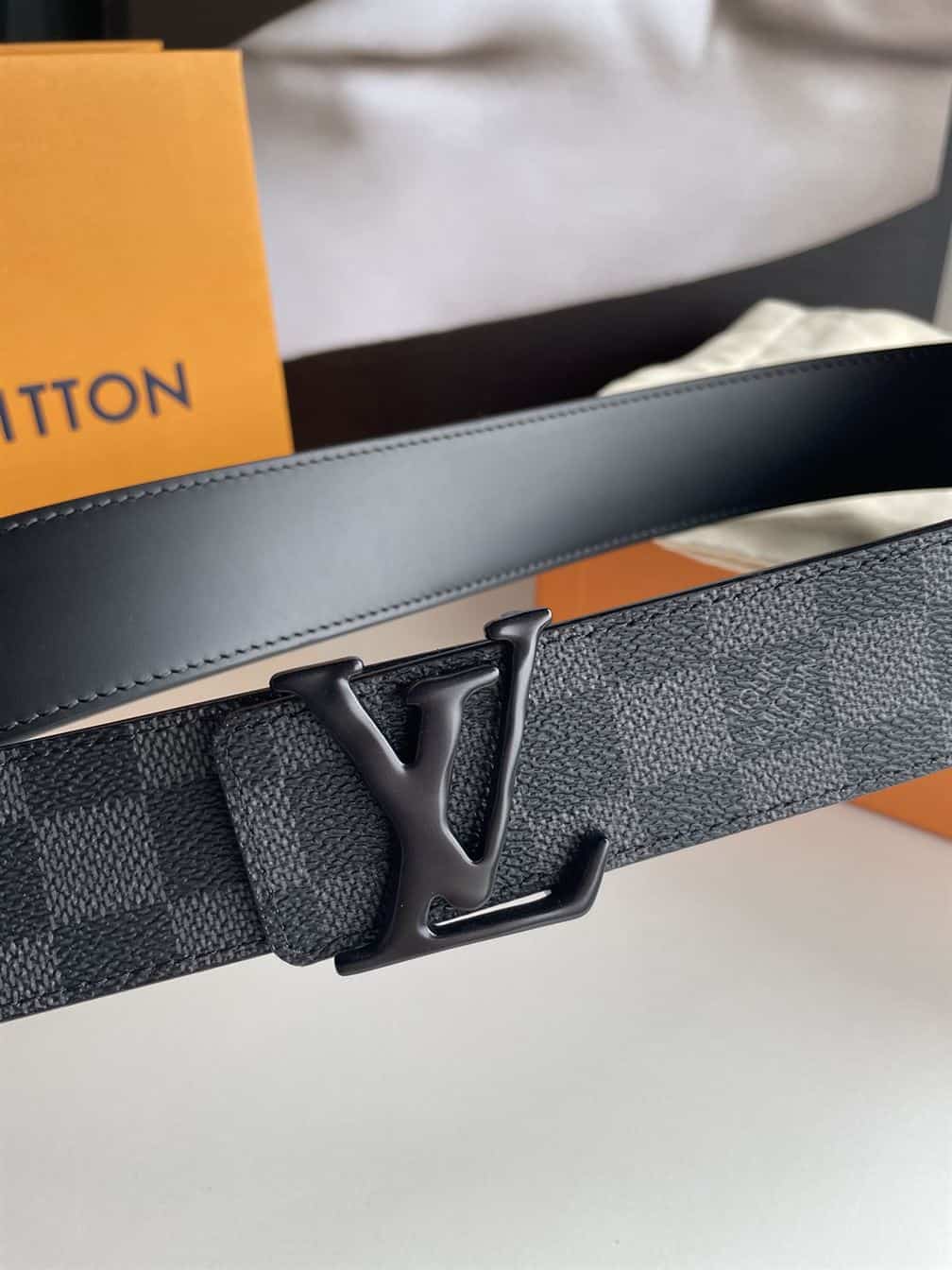 LOUIS VUITTON BELT INITIALES DAMIER GRAPHITE BLACK GREY – LBE019