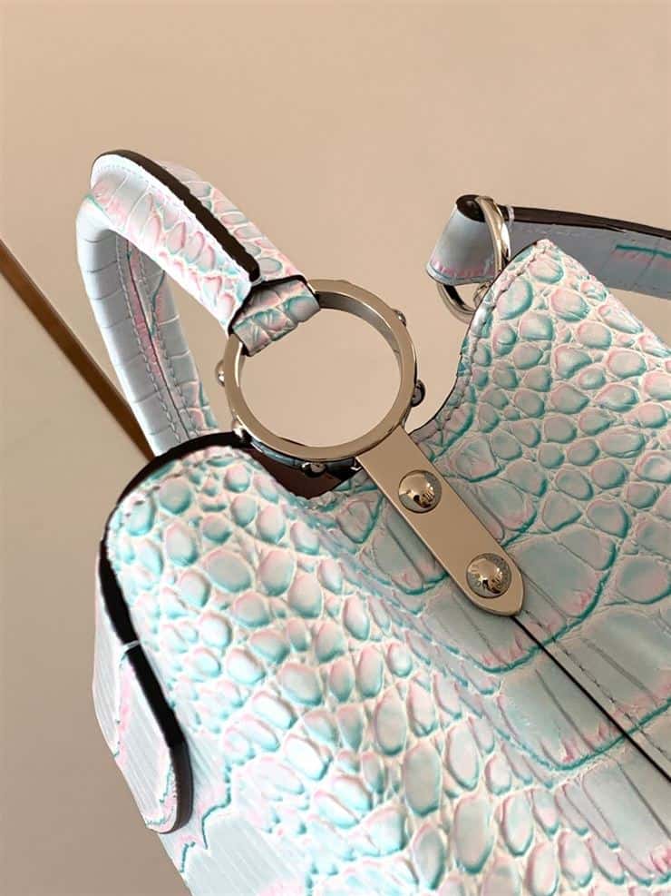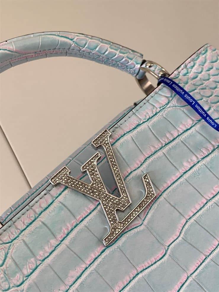 The Louis Vuitton Capucines BB in Light Blue is a sophisticated and elegant handbag that showcases the brand’s exceptional craftsmanship and timeless design. Named after the historic Rue des Capucines in Paris. Where Louis Vuitton’s first store was established, this refined accessory perfectly balances classic aesthetics with a contemporary twist. The Capucines BB is crafted from luxurious materials, featuring the iconic LV monogram and a structured silhouette that exudes sophistication. The serene light blue hue adds a fresh and stylish touch, making it a versatile piece for any wardrobe. With both a top handle and a detachable shoulder strap. This chic handbag offers multiple carrying options, ideal for enhancing both casual and formal ensembles. Its compact size and exquisite detailing ensure it stands out as a statement piece for any occasion.