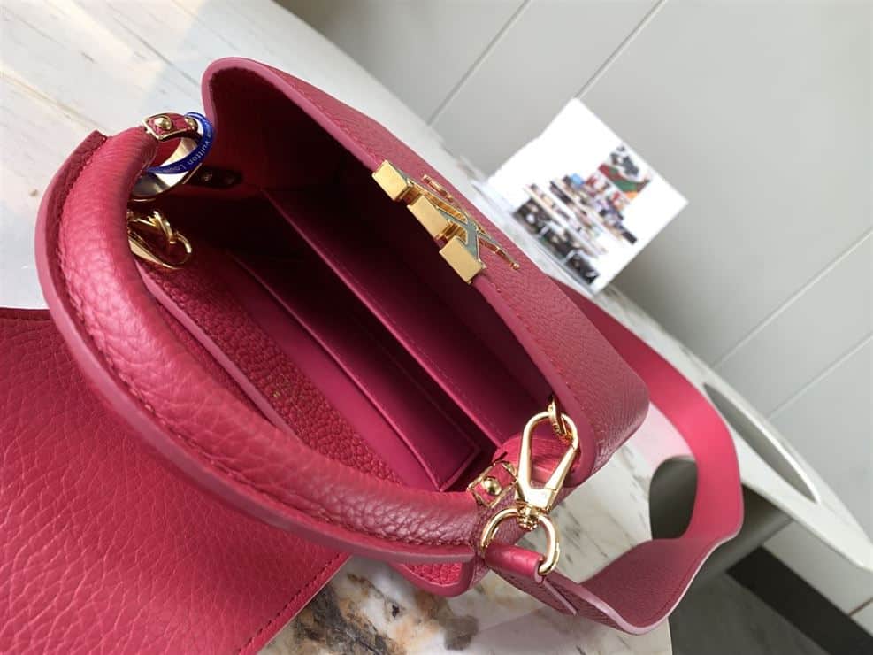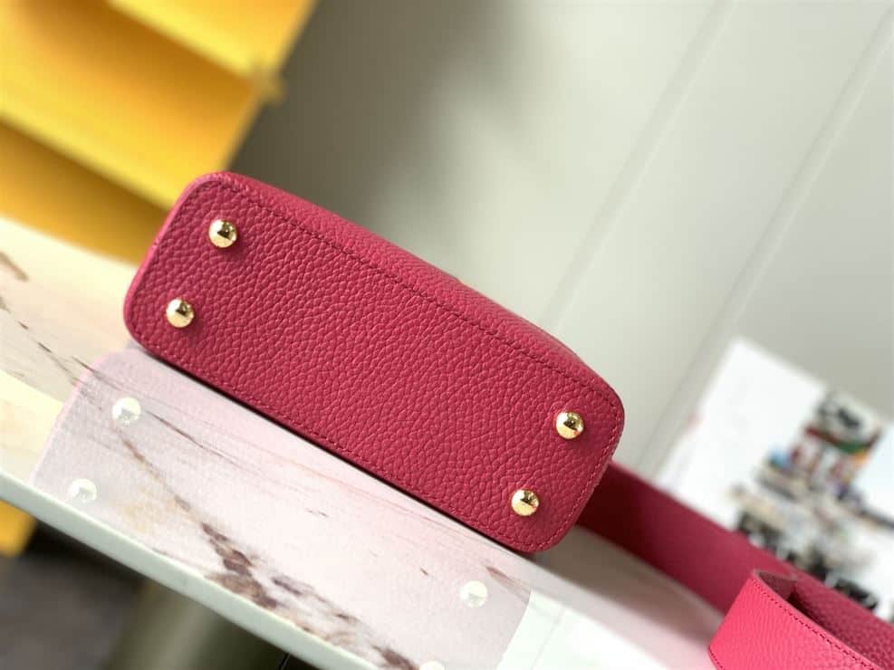The Louis Vuitton Capucines Mini in Red is a captivating and elegant accessory that perfectly encapsulates the luxury and craftsmanship of the iconic brand. Named after the historic Rue des Capucines in Paris, this compact handbag combines timeless design with a vibrant pop of color.