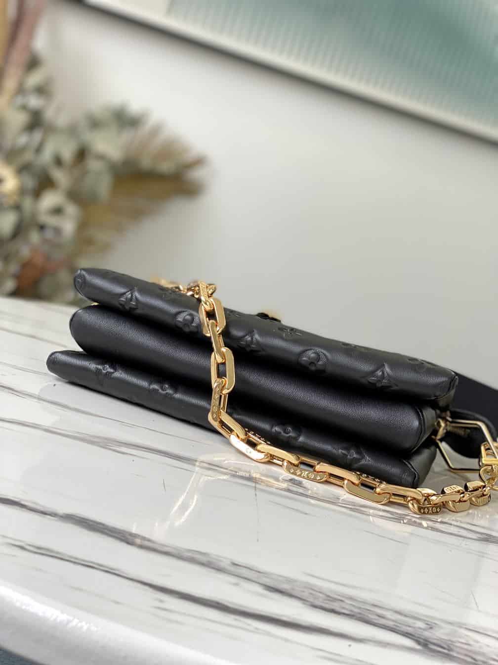 - The Louis Vuitton Coussin PM is a stylish and contemporary accessory that showcases the brand’s innovative design and luxurious craftsmanship. Crafted from soft, pillowy leather adorned with the iconic Louis Vuitton monogram, this bag exudes modern elegance and sophistication.