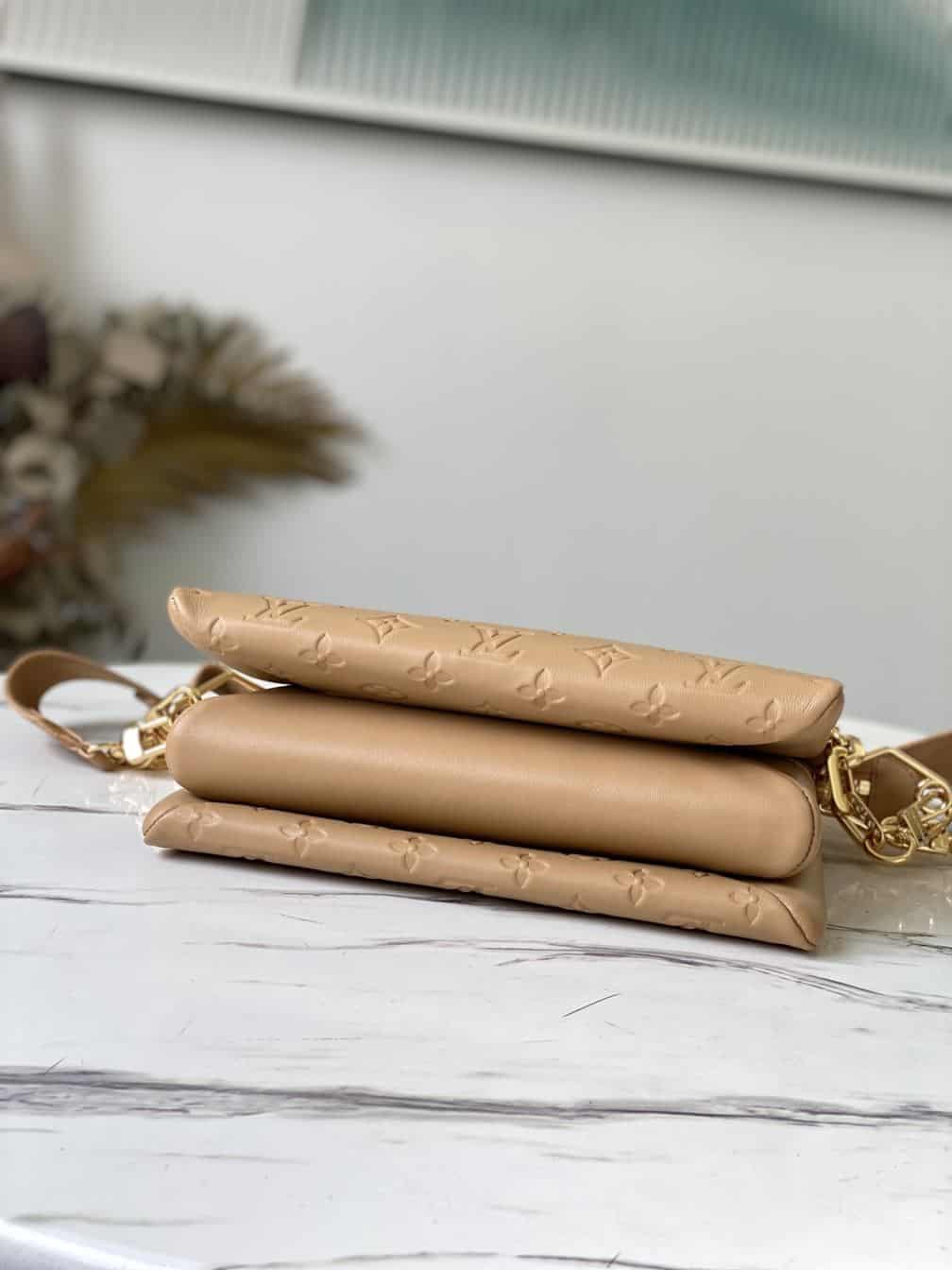 - The Louis Vuitton Coussin PM is a stylish and contemporary accessory that showcases the brand’s innovative design and luxurious craftsmanship. Crafted from soft, pillowy leather adorned with the iconic Louis Vuitton monogram, this bag exudes modern elegance and sophistication.