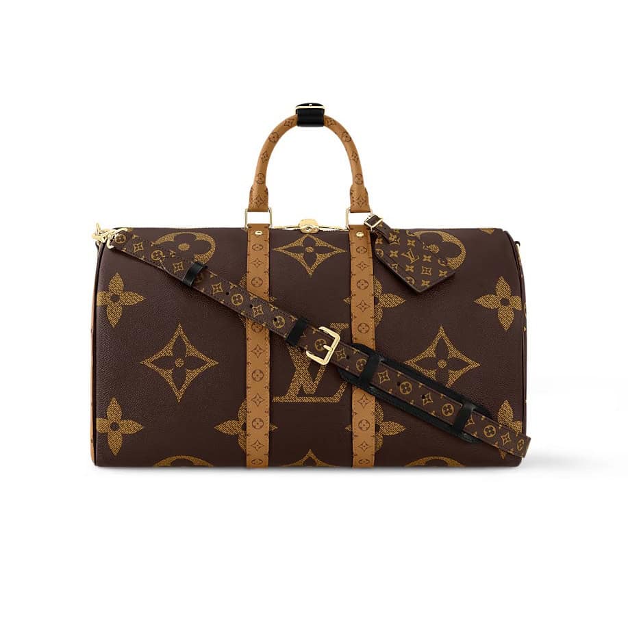 - The Louis Vuitton Keepall Bandoulière 45 in Monogram Giant Canvas is a modern, stylish travel bag that combines luxury with practicality. Crafted from the iconic Monogram canvas, it features oversized, bold Monogram motifs, giving it a contemporary and standout look. The Keepall 45 is the perfect size for short trips, with a spacious interior to carry all your essentials.Designed for comfort and convenience, it includes a detachable, adjustable shoulder strap for hands-free carrying, along with sturdy leather handles for easy hand-carrying. This bag seamlessly blends Louis Vuitton’s signature craftsmanship with a bold, updated design, making it an ideal choice for those who want a statement piece that is both fashionable and functional.