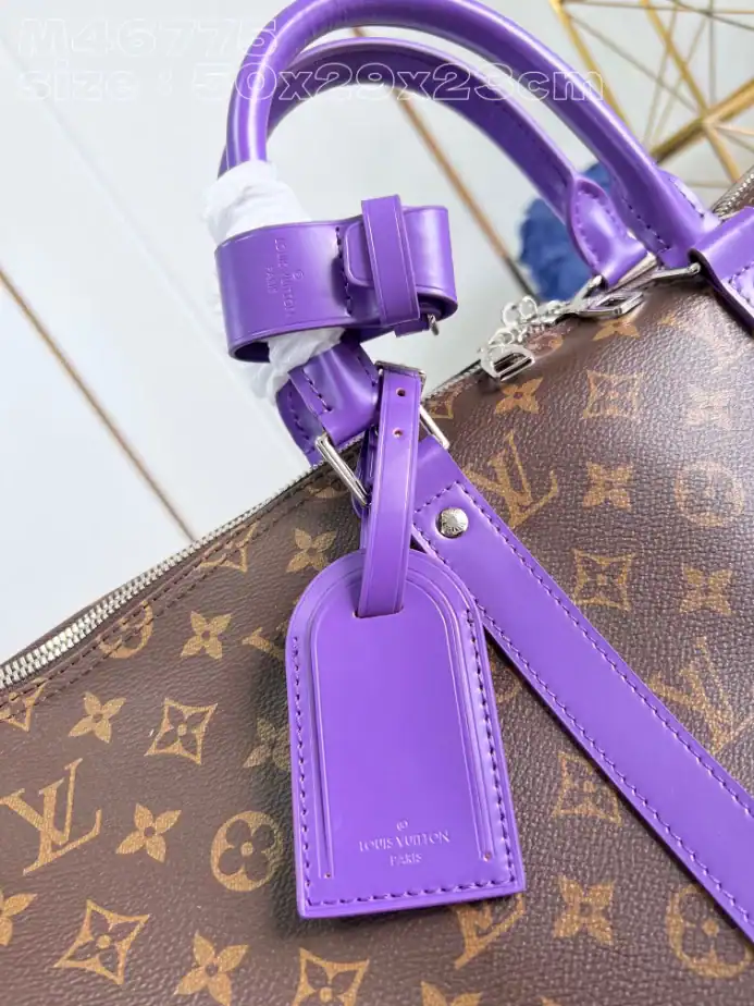 - The Louis Vuitton Keepall Bandoulière 50 Bag is a timeless, luxurious travel companion, designed for both style and practicality. Crafted from Louis Vuitton’s signature Monogram canvas, this spacious duffle bag offers ample room for your essentials, making it the ideal choice for weekend getaways or extended trips. The 50 cm size strikes the perfect balance between spaciousness and portability. It features a comfortable, adjustable shoulder strap for easy carrying, along with durable leather handles. The Keepall Bandoulière 50 seamlessly combines classic elegance with modern functionality, making it a must-have for sophisticated travelers.