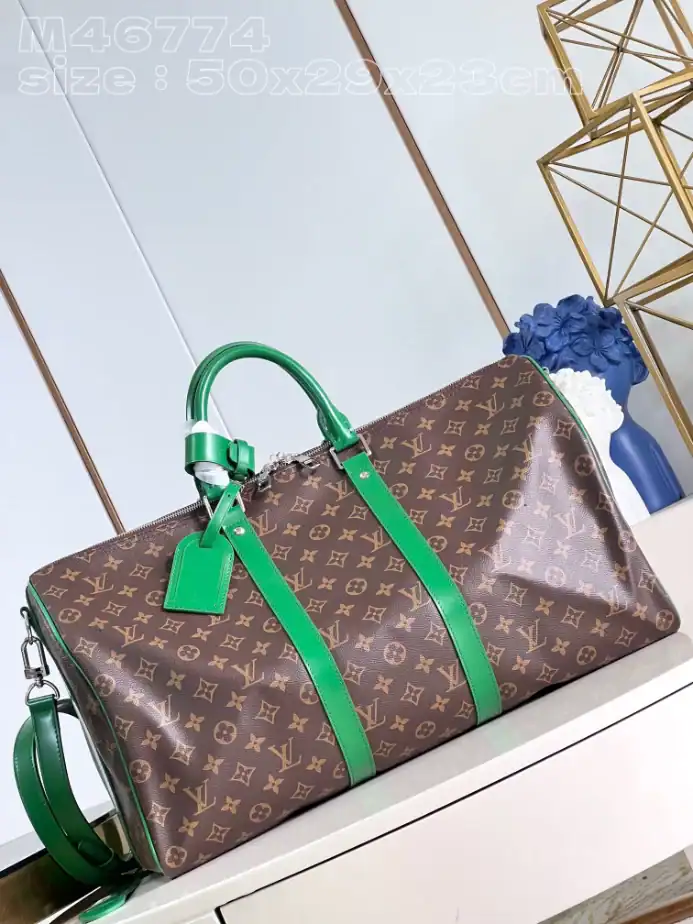 - The Louis Vuitton Keepall Bandoulière 50 Bag is a timeless, luxurious travel companion, designed for both style and practicality. Crafted from Louis Vuitton’s signature Monogram canvas, this spacious duffle bag offers ample room for your essentials, making it the ideal choice for weekend getaways or extended trips. The 50 cm size strikes the perfect balance between spaciousness and portability. It features a comfortable, adjustable shoulder strap for easy carrying, along with durable leather handles. The Keepall Bandoulière 50 seamlessly combines classic elegance with modern functionality, making it a must-have for sophisticated travelers.