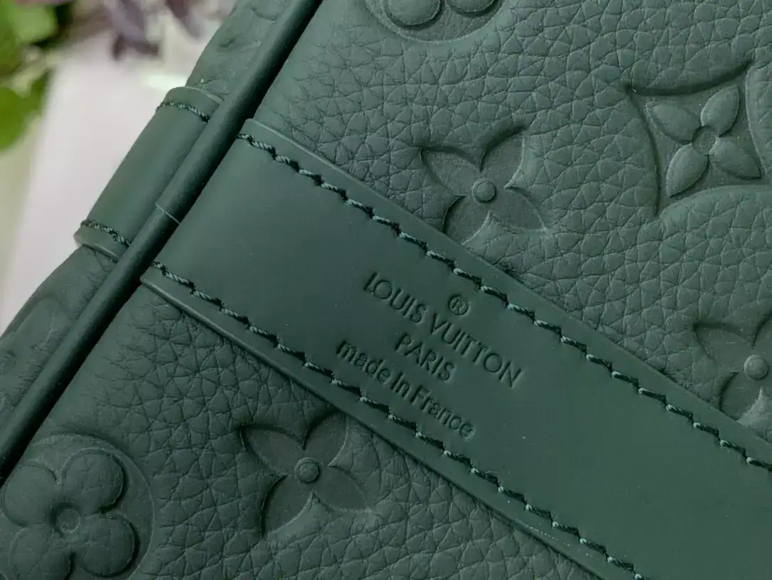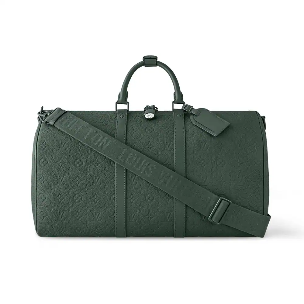 - The Louis Vuitton Keepall Bandoulière 50 Forest Green is a stylish travel bag made from signature Monogram canvas with a refined forest green color. It offers a spacious interior, perfect for short trips. With an adjustable shoulder strap and leather handles, it combines convenience and elegance, making it an ideal choice for those who appreciate both fashion and functionality.