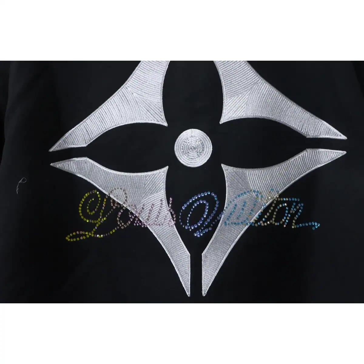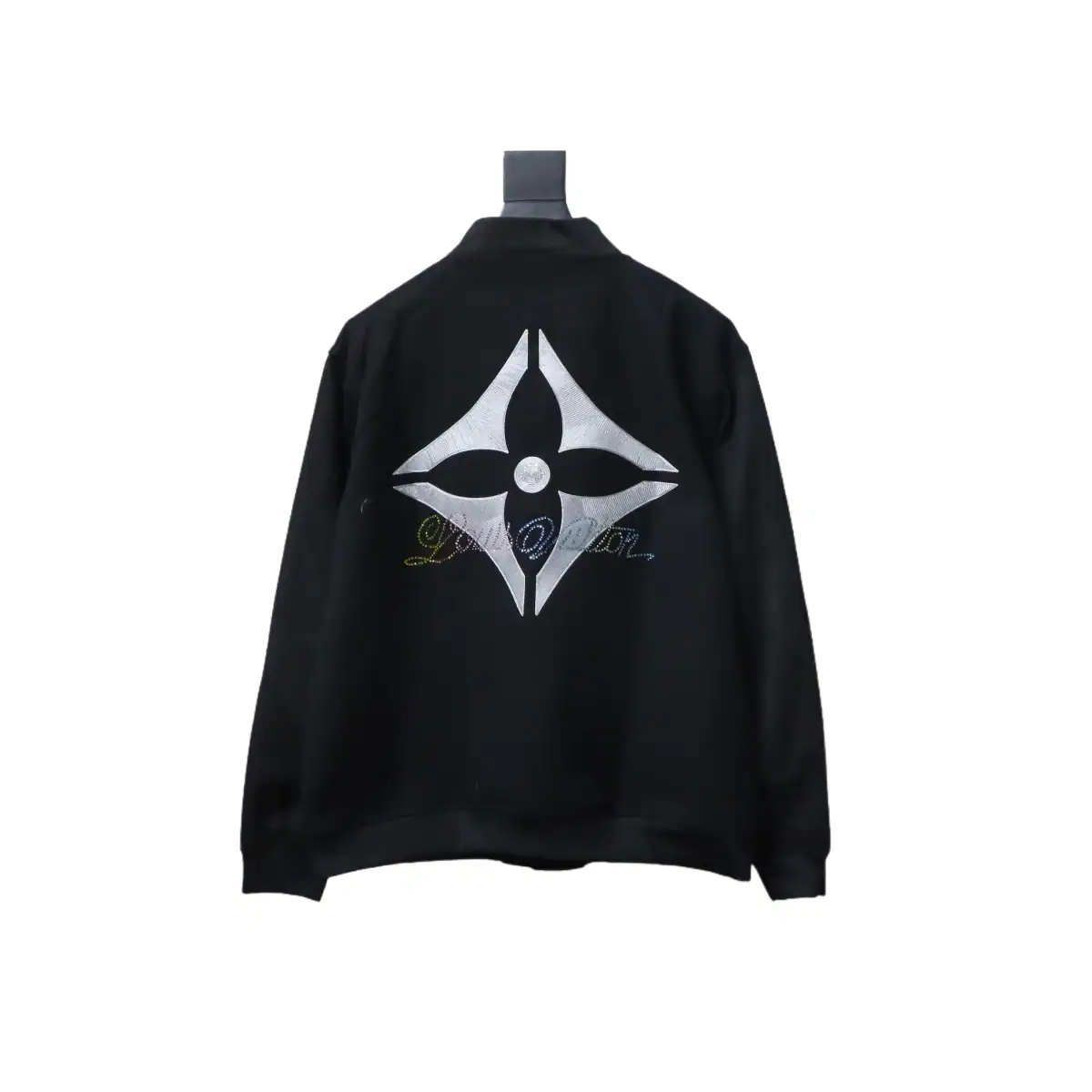 Louis Vuitton Leather and Rhinestone Waisted Baseball Jacket Black ; LVC96