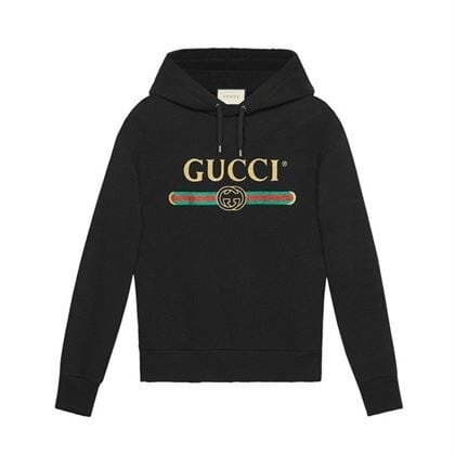 GUCCI BLACK VINTAGE LOGO COTTON SWEATSHIRT HOODED – GCK006