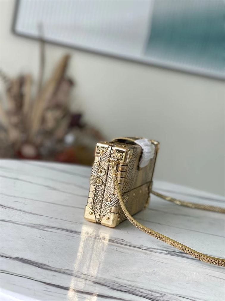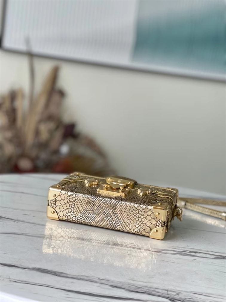 The Louis Vuitton Petite Malle Crocodilien Mat is the pinnacle of luxury and artisanal craftsmanship. The Petite Malle features signature trunk details, including the iconic S-lock closure, gleaming metal hardware, and leather trim, all meticulously designed to evoke the spirit of timeless travel. Compact yet bold, this statement piece perfectly balances elegance and practicality, making it a coveted addition to any discerning fashion collectsion. The Petite Malle Crocodilien Mat is a true testament to Louis Vuitton’s heritage and innovative spirit.