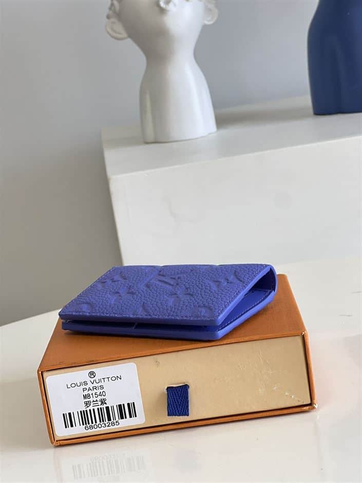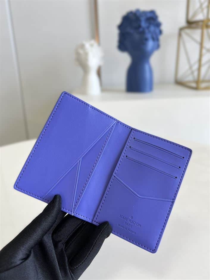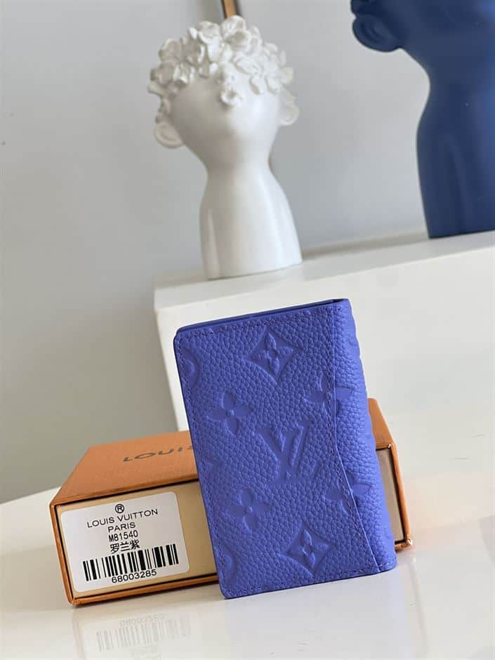 The Louis Vuitton Pocket Organizer in Blue Monogram Taurillon leather is a luxurious accessory that combines practicality with impeccable craftsmanship. Its compact size makes it ideal for carrying essential cards and bills, while the leather’s soft texture adds a touch of sophistication.