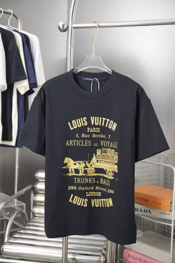 The Louis Vuitton T-shirt showcases the brand’s signature blend of luxury and modern style. Crafted from premium-quality cotton, it offers a soft, breathable feel and exceptional comfort for everyday wear. The design features refined detailing and the iconic Louis Vuitton logo, reflecting timeless elegance and contemporary fashion. Perfect for both casual and elevated looks, this T-shirt embodies effortless sophistication and high-end craftsmanship.