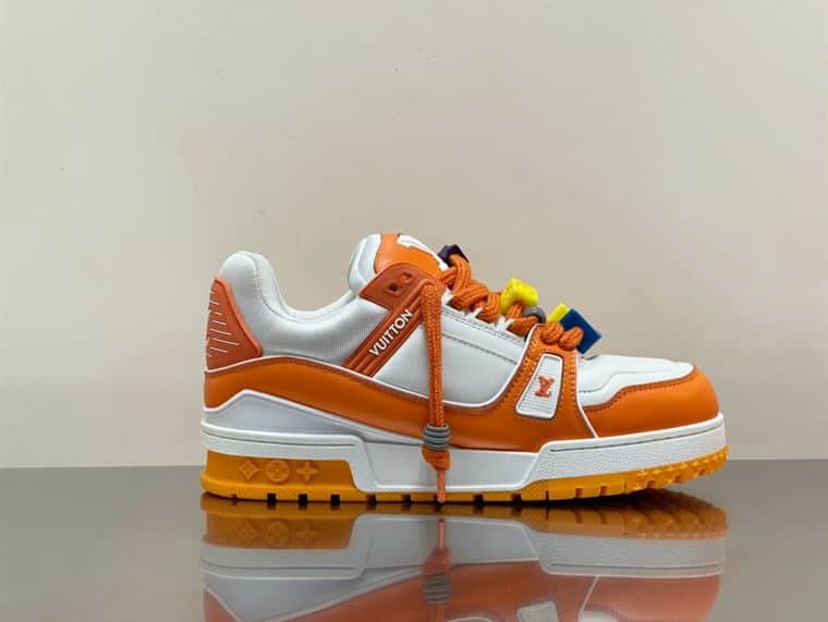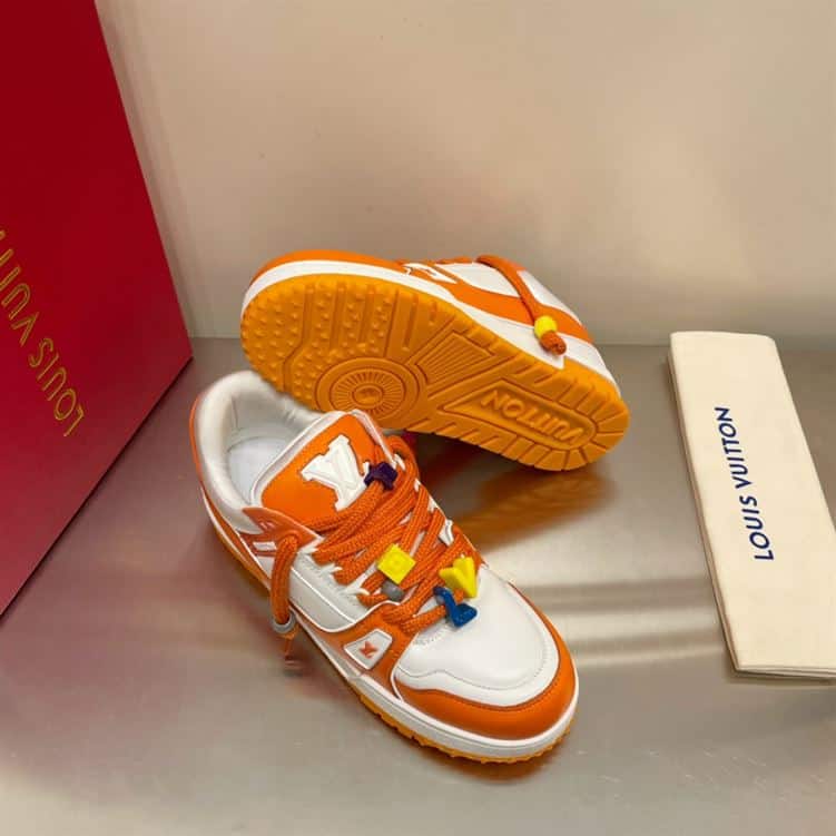 LOUIS VUITTON TRAINER MAXI LOW-TOP SNEAKERS IN WHITE AND ORANGE – LVS115