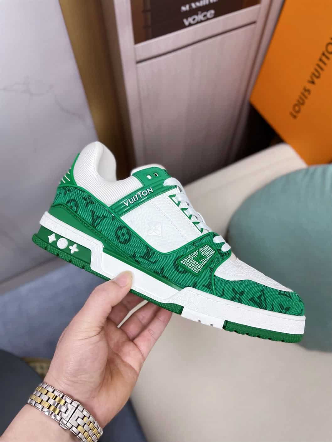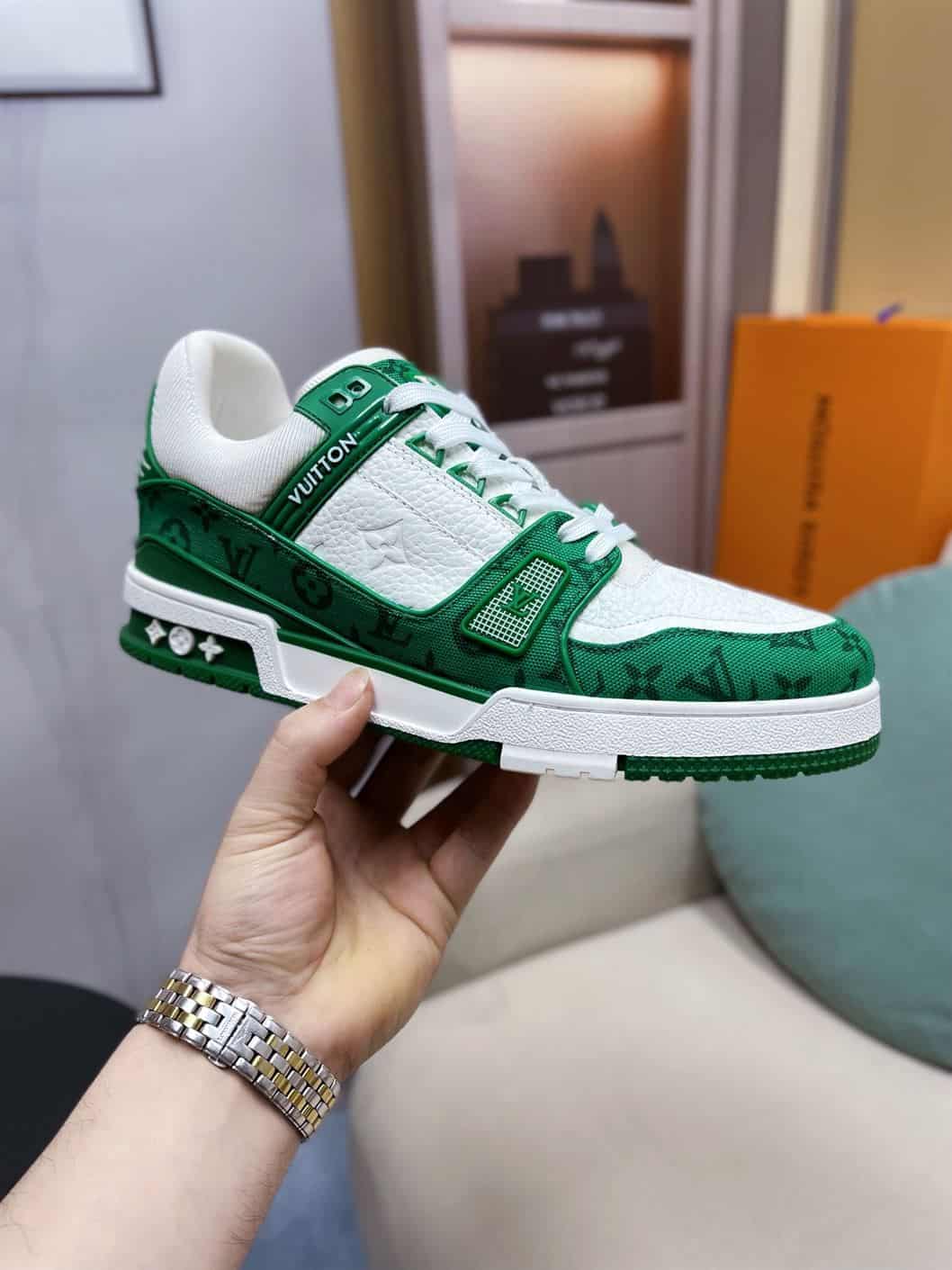 LOUIS VUITTON TRAINER MONOGRAM DENIM WHITE GREEN – LVS001