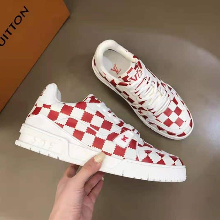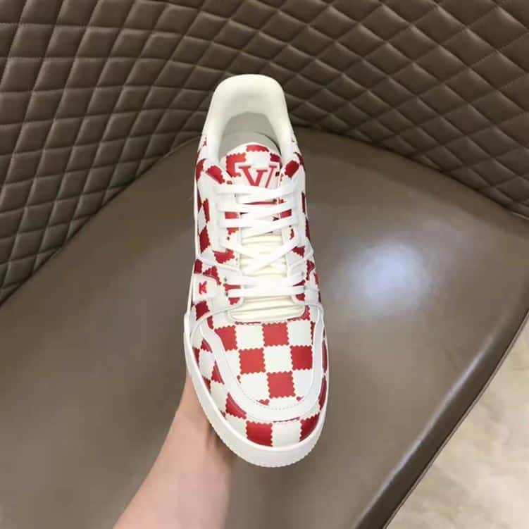 LOUIS VUITTON TRAINER SNEAKER RED WHITE DAMIER – LVS044