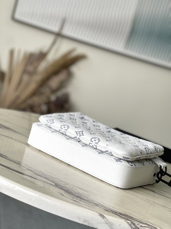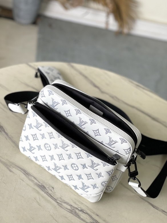 - The Louis Vuitton Trio Messenger White Bag is a stylish and versatile piece that blends contemporary design with the brand’s signature elegance. Crafted from premium white canvas, this bag features three detachable pouches, offering multiple carrying options and ample storage for essentials.