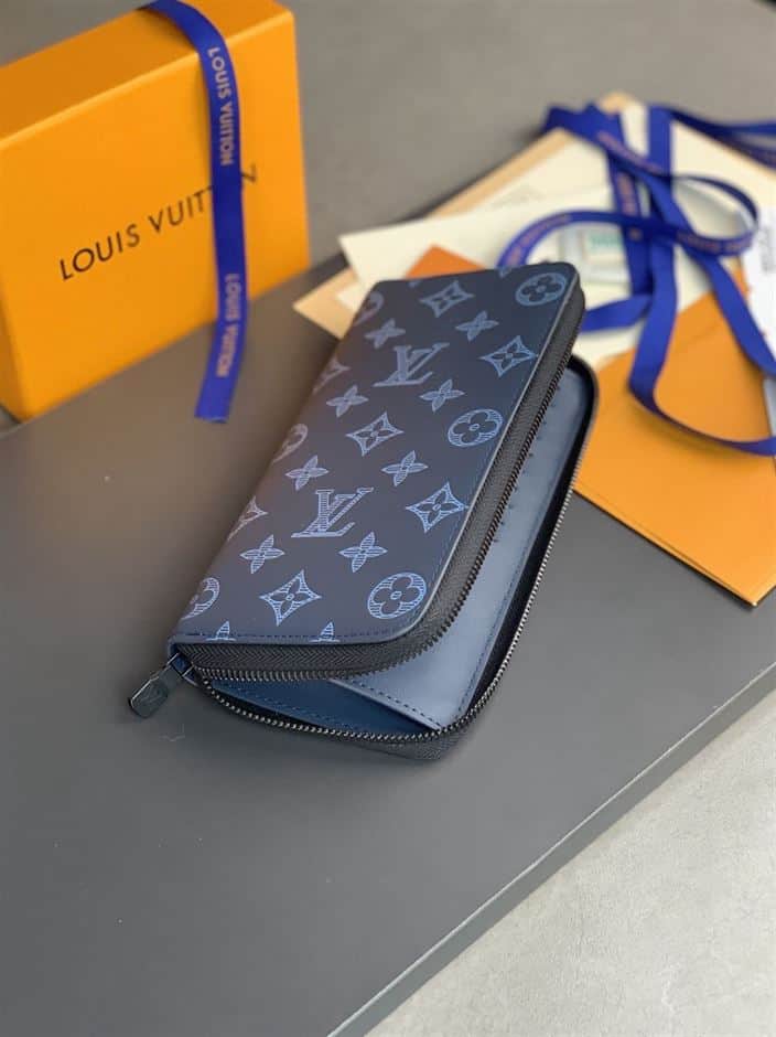 The Louis Vuitton Wallet Organizer in blue is a stylish and functional accessory that combines luxury with practicality. Its well-designed interior compartments ensure efficient organization, while the sleek and compact design makes it easy to carry in hand or slip into a bag.