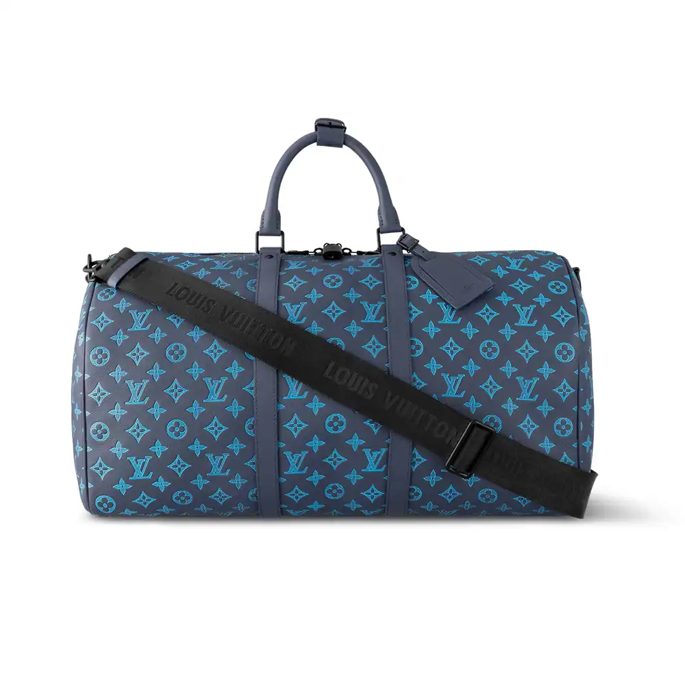 - The Keepall Bandoulière 50 in Monogram Shadow is a sophisticated and contemporary update to Louis Vuitton’s iconic Keepall bag. Crafted from luxurious Monogram Shadow canvas, it features a subtle, embossed Monogram pattern in a sleek, dark color palette, giving it a modern and elegant feel. The 50 size offers ample space for travel essentials, making it perfect for weekend trips or short getaways. With both top handles and an adjustable, detachable shoulder strap, the bag offers versatility and comfort for easy carrying. The combination of style, durability, and practicality makes the Monogram Shadow Keepall Bandoulière 50 an essential piece for any discerning traveler.
