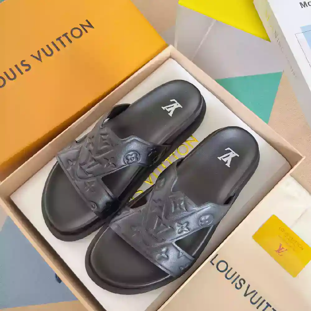 #LouisVuittonSlides #LuxuryFootwear #PremiumLeather #LVStyle #DesignerSlides