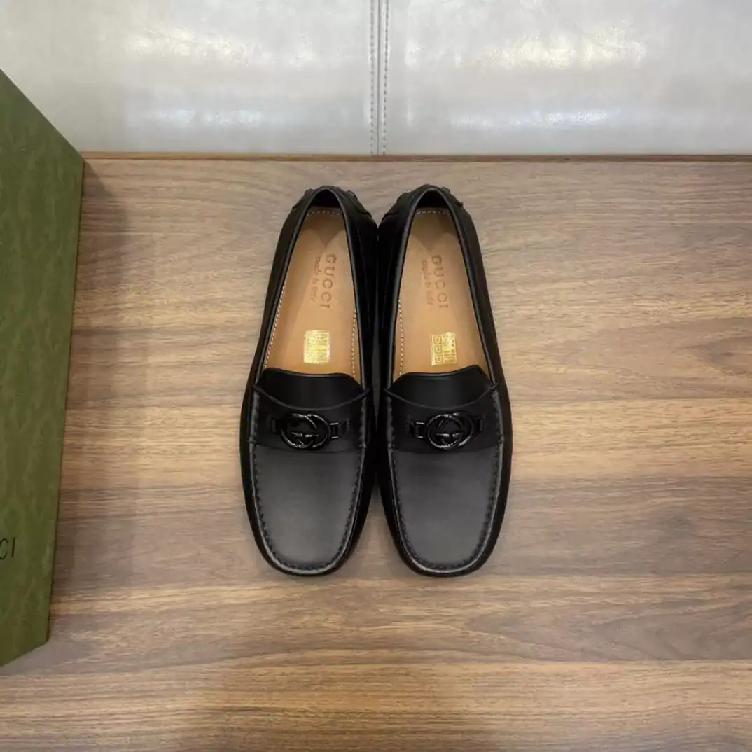 MEN’S INTERLOCKING G DRIVER BLACK LEATHER ; GL106