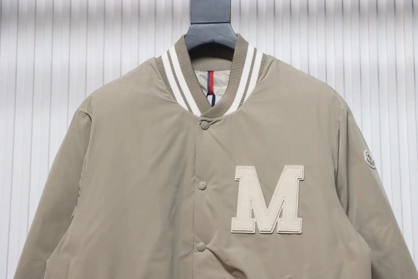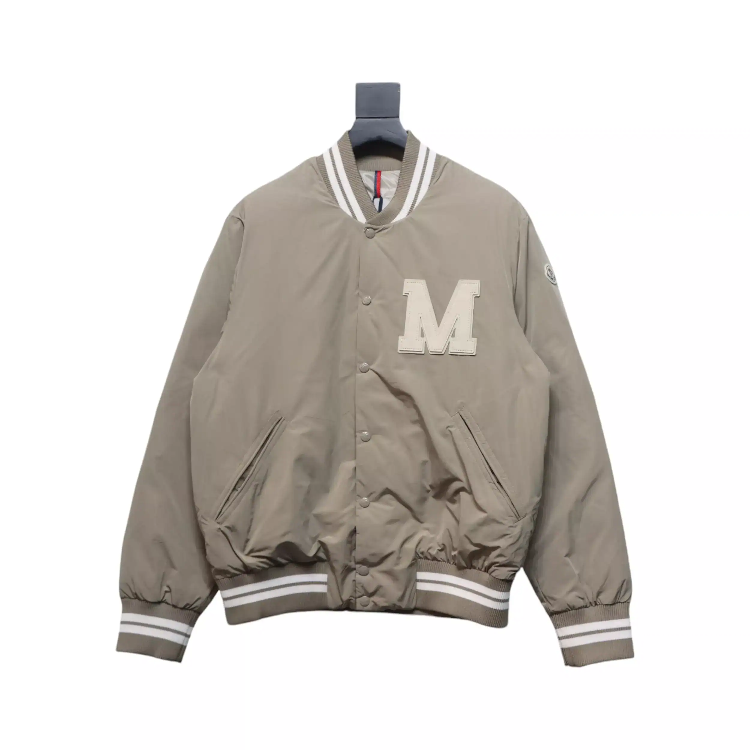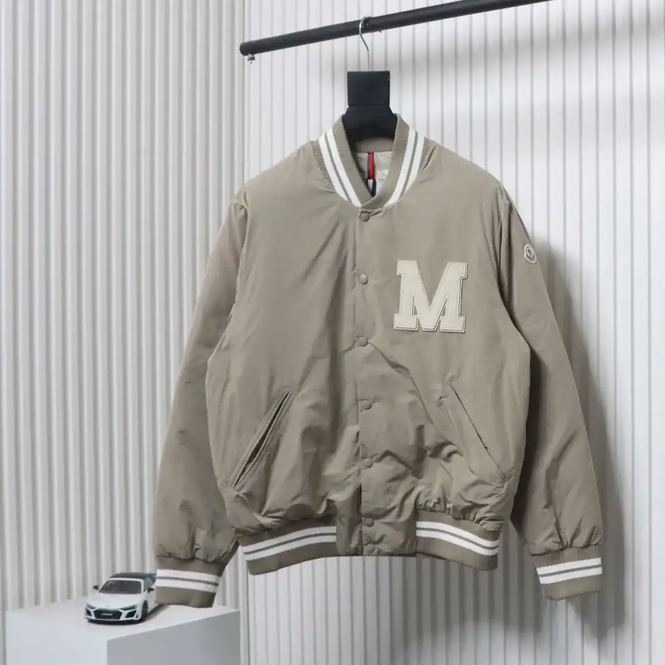 Moncler Lateltin White M Mark Varsity Gray Down Jacket ; MC171