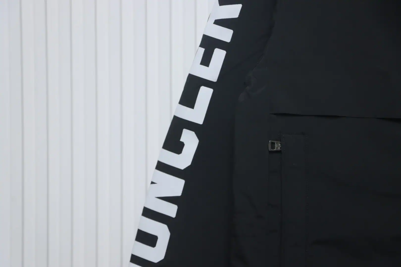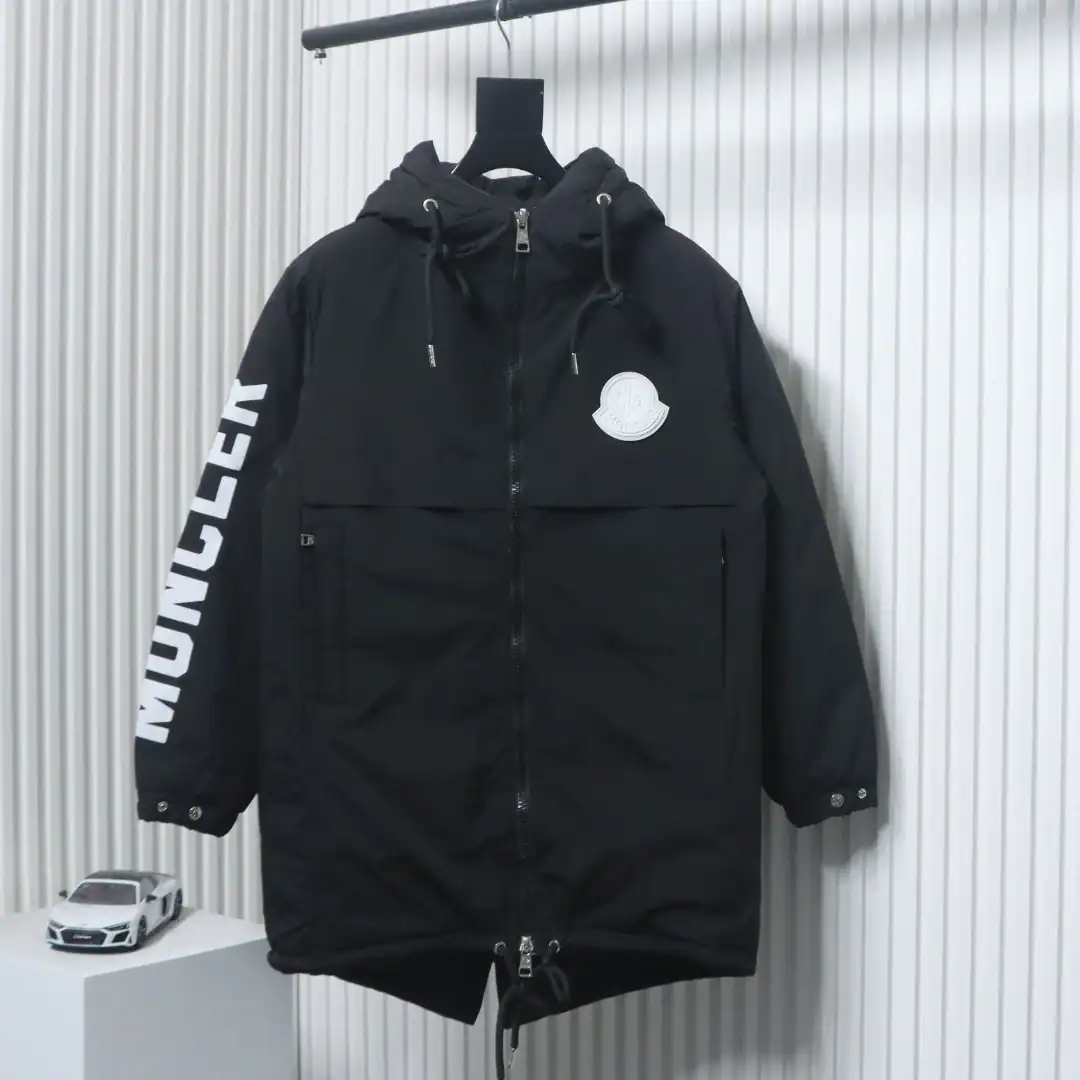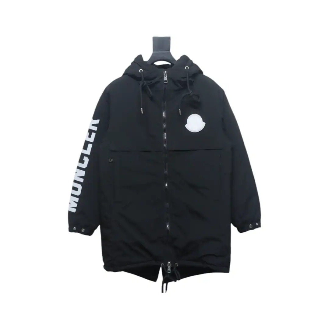 Moncler Sleeve LOGO Lettering Long Down Jacket Black ; MC166