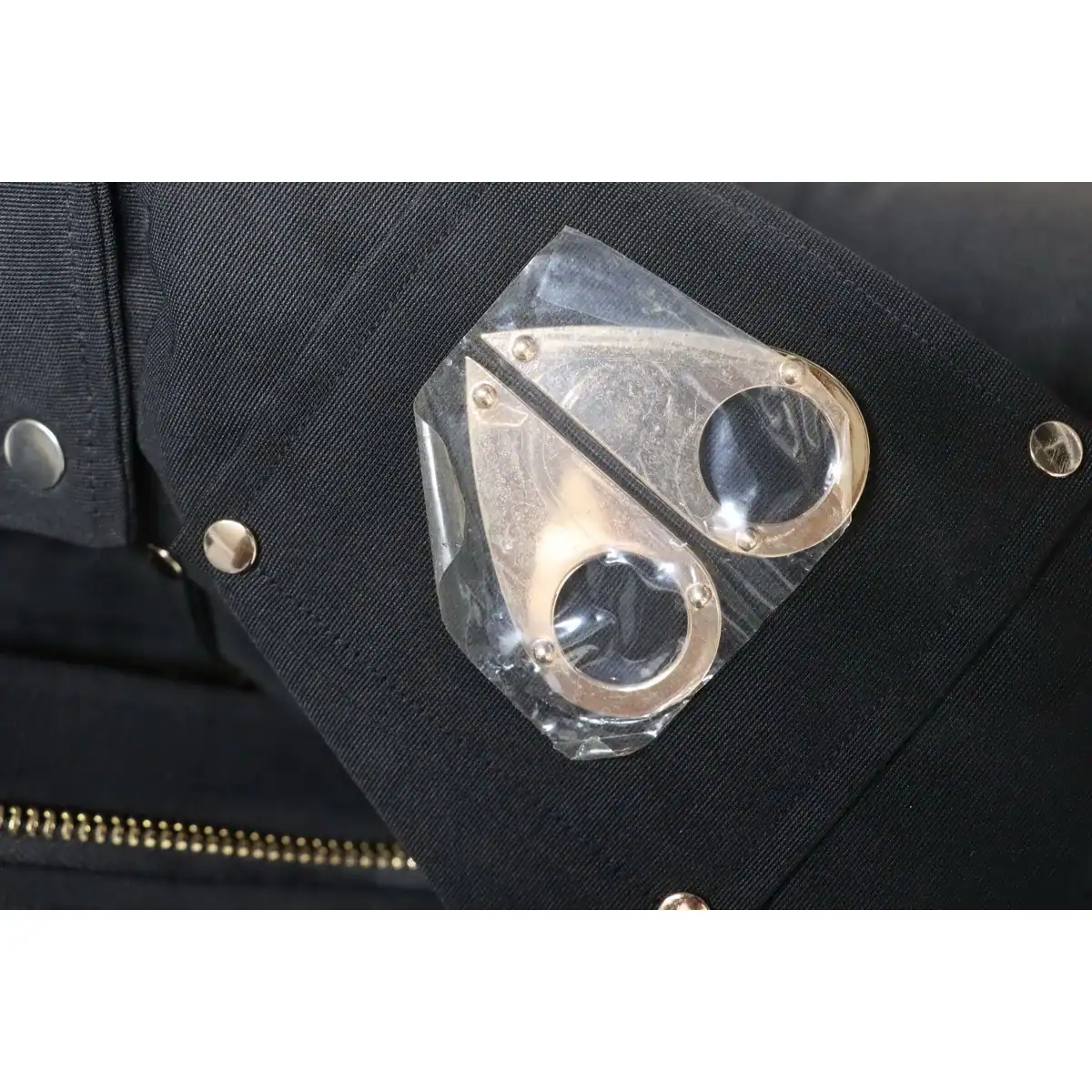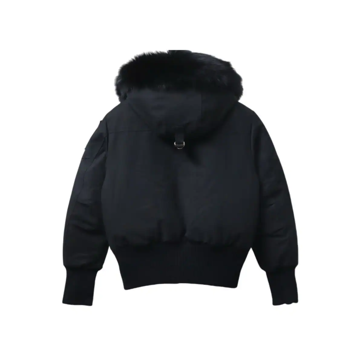 Moose Knuckles Cloud Bomber Black Jacket with Detachable Hood and Shearling Trim In Milkyway ; MKC006