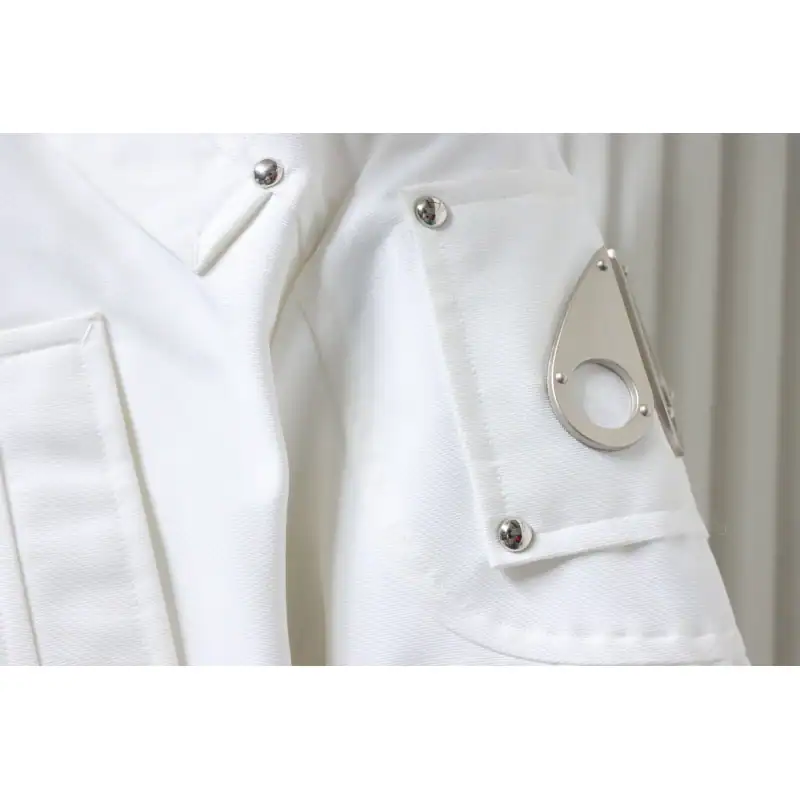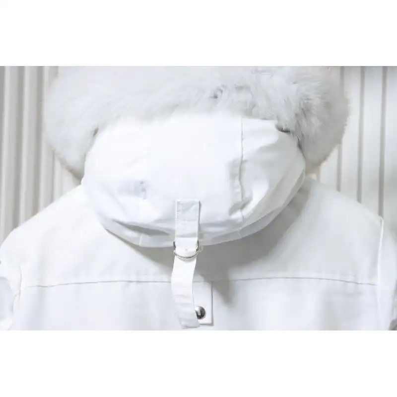 Moose Knuckles Cloud Bomber White Jacket with Detachable Hood and Shearling Trim In Milkyway ; MKC028