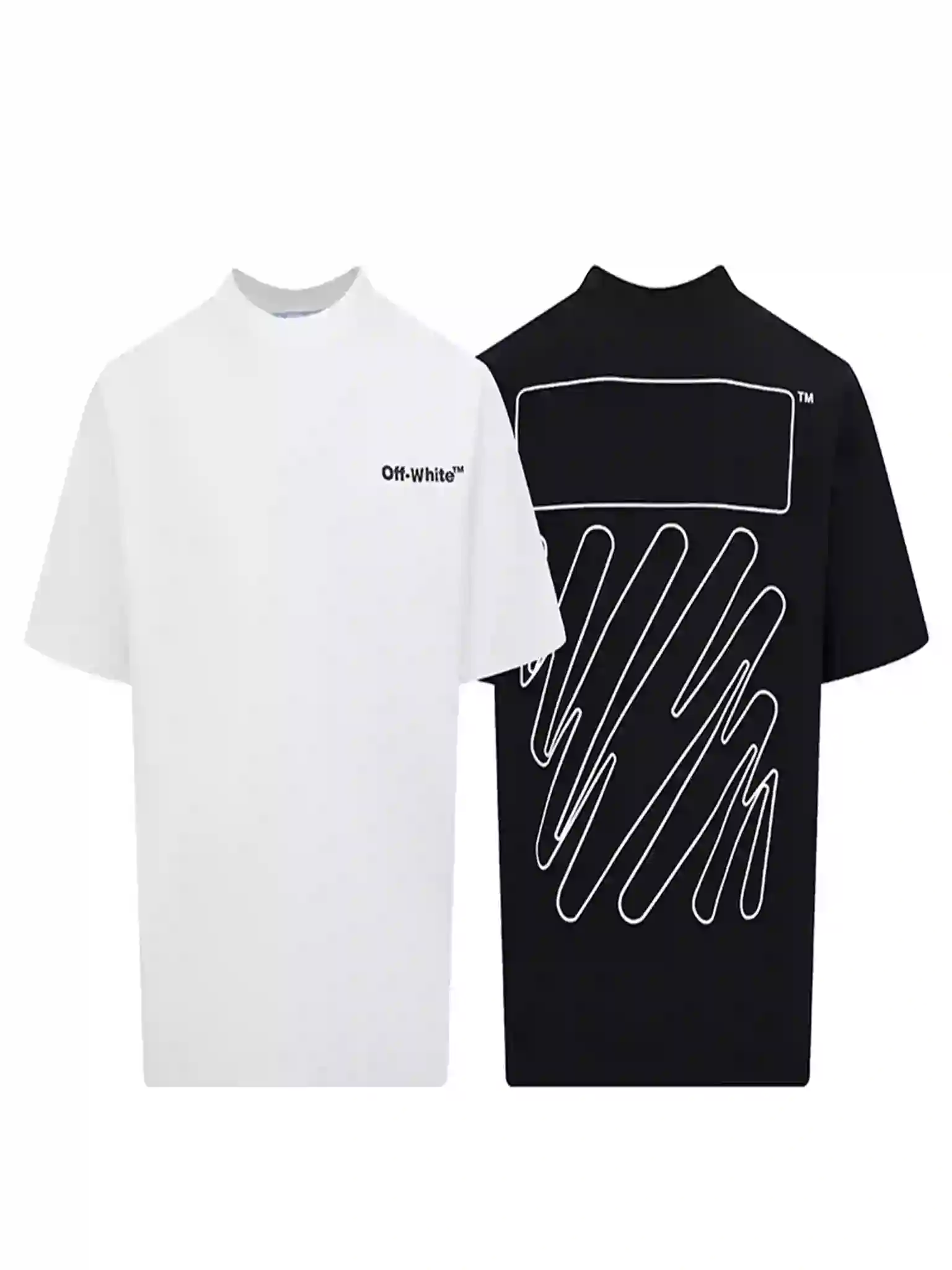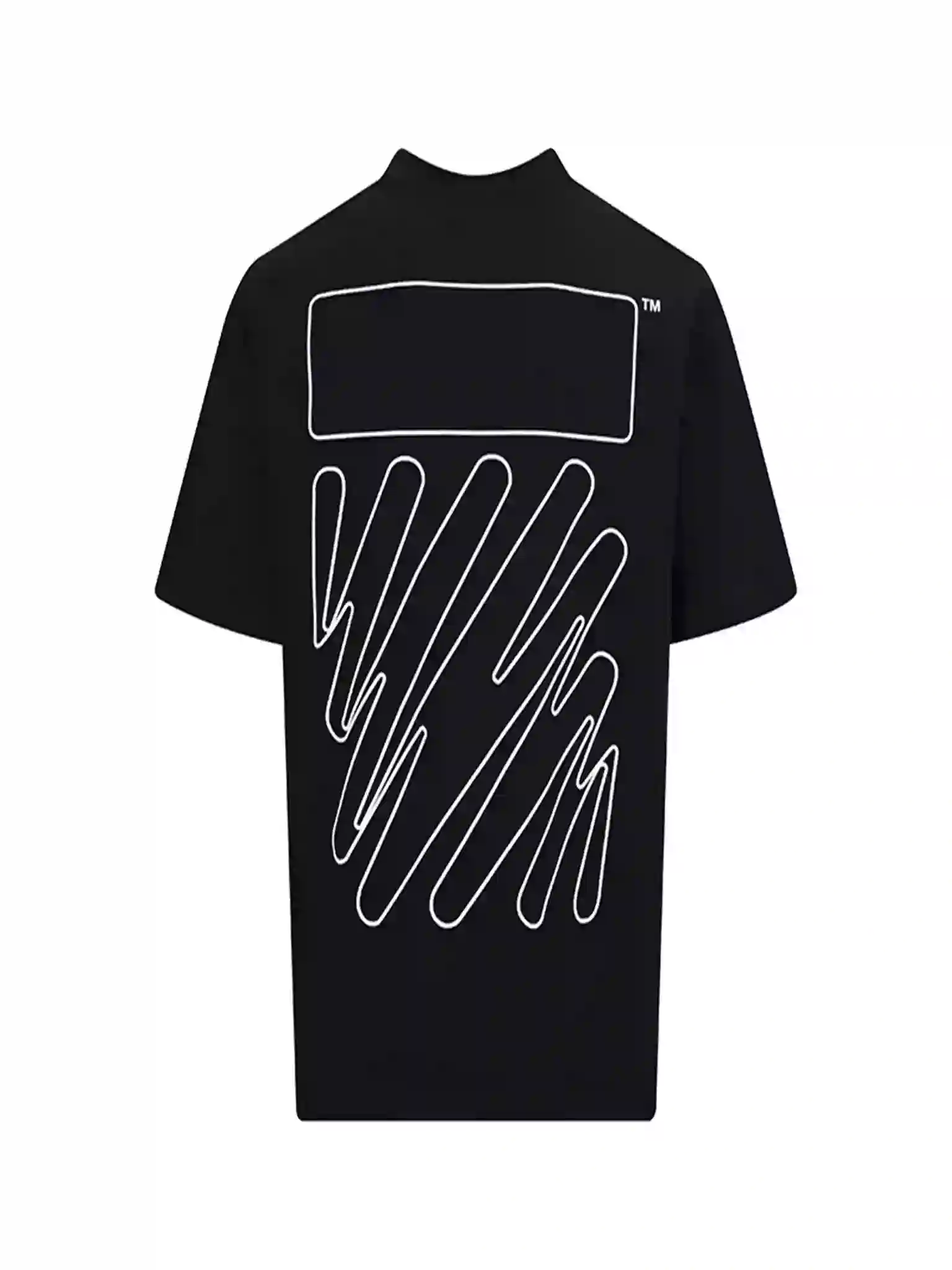Discover the Off-White Black Wave Out T-Shirt ; OWS013, a bold statement piece blending luxury streetwear and contemporary design.