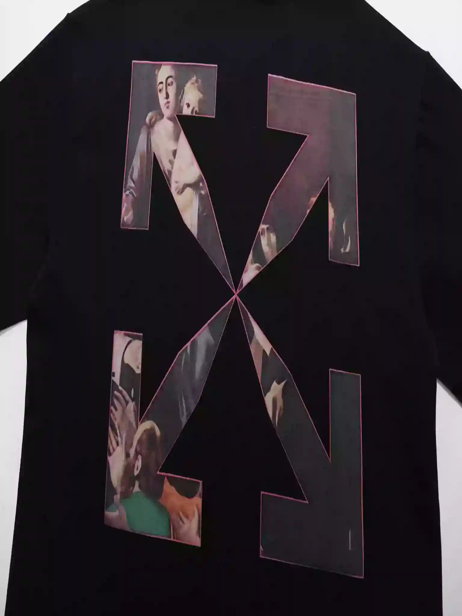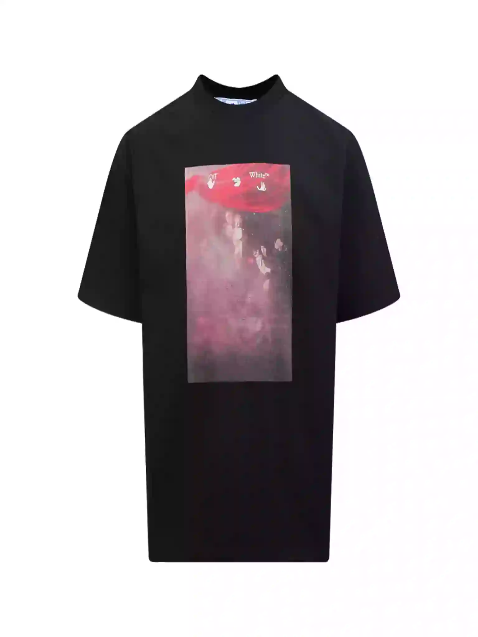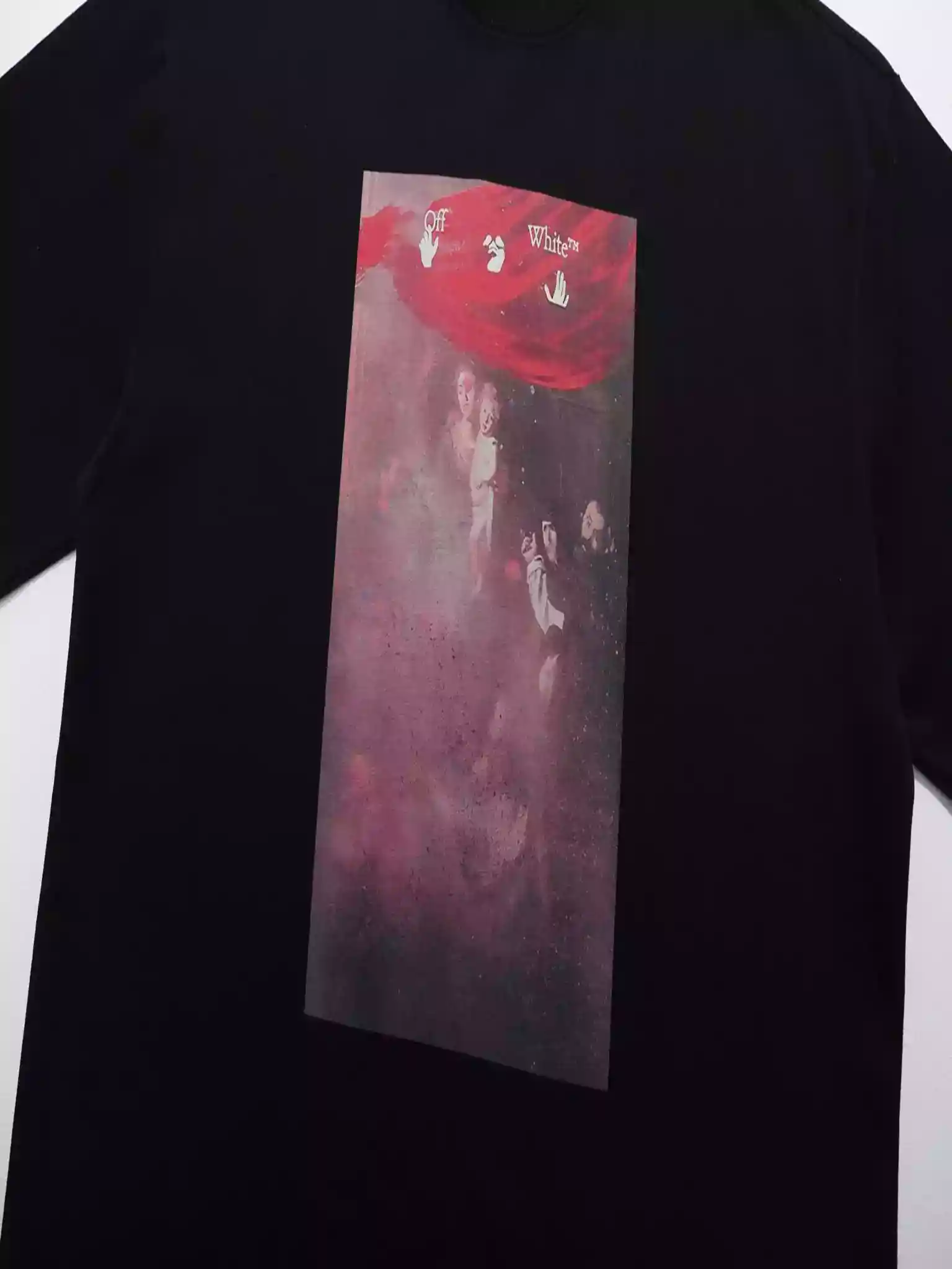 Discover the Off-White Sprayed Caravaggio Slim T-Shirt in Black (OWS010) – a bold fusion of high fashion and streetwear.