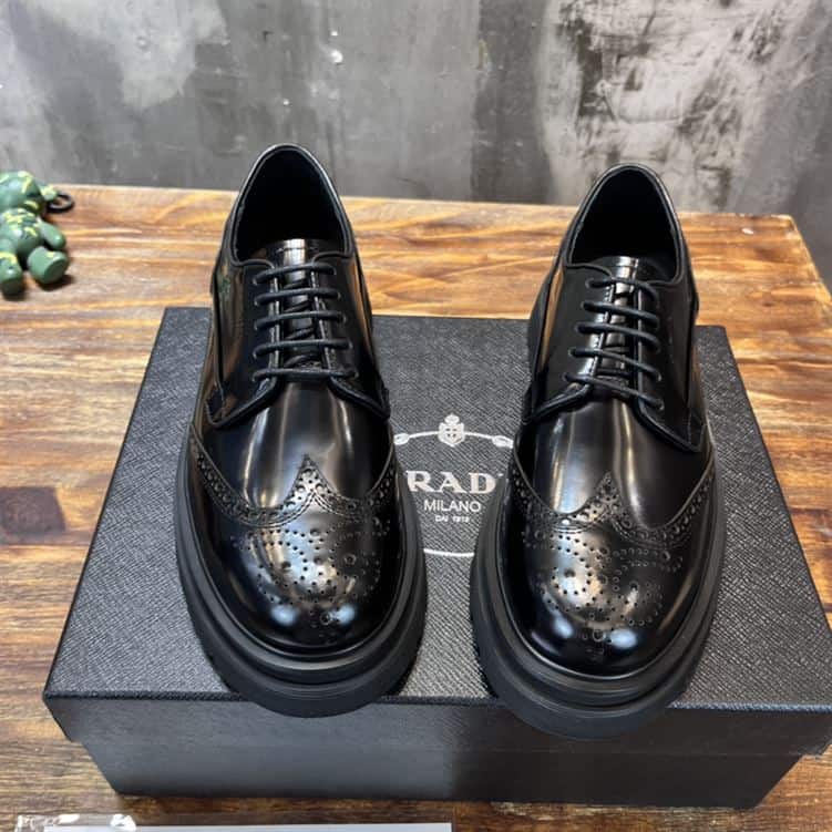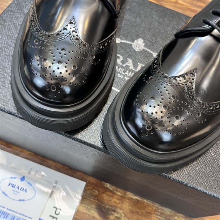 PRADA BRUSHED LEATHER DERBY BROGUE SHOES SHOES – PRS033
