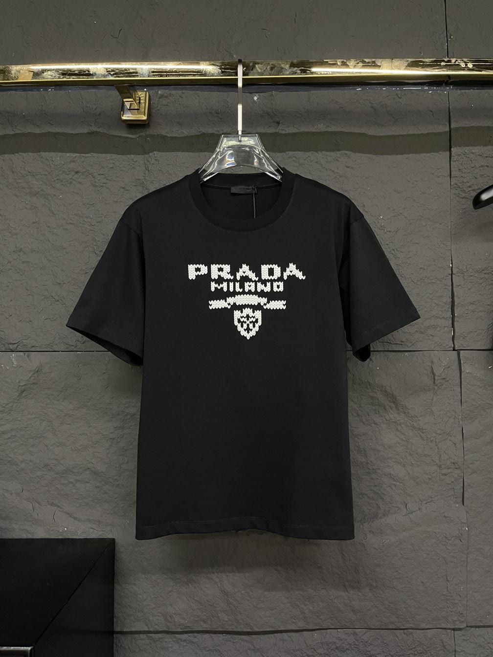 #PradaFashion#CottonTeeStyle#BlackTShirt#DesignerWear#WardrobeEssential