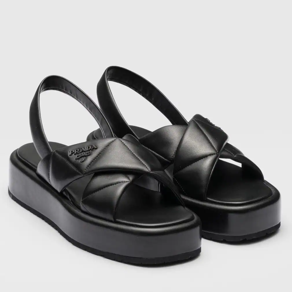 PRADA FLATFORM SANDALS IN BLACK QUILTED NAPPA LEATHER ; PSD043