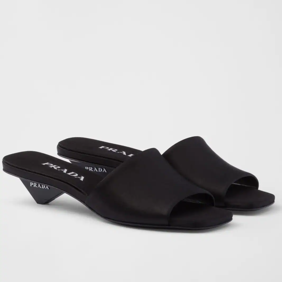 PRADA HEELED SLIDES 35MM IN BLACK SATIN ; PSD066