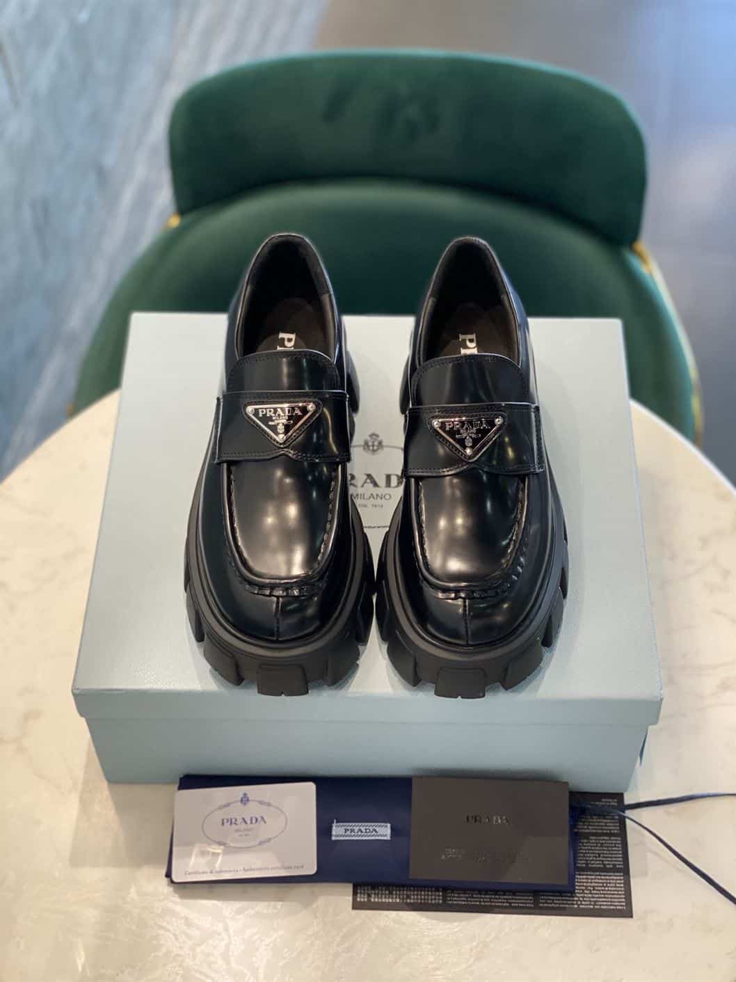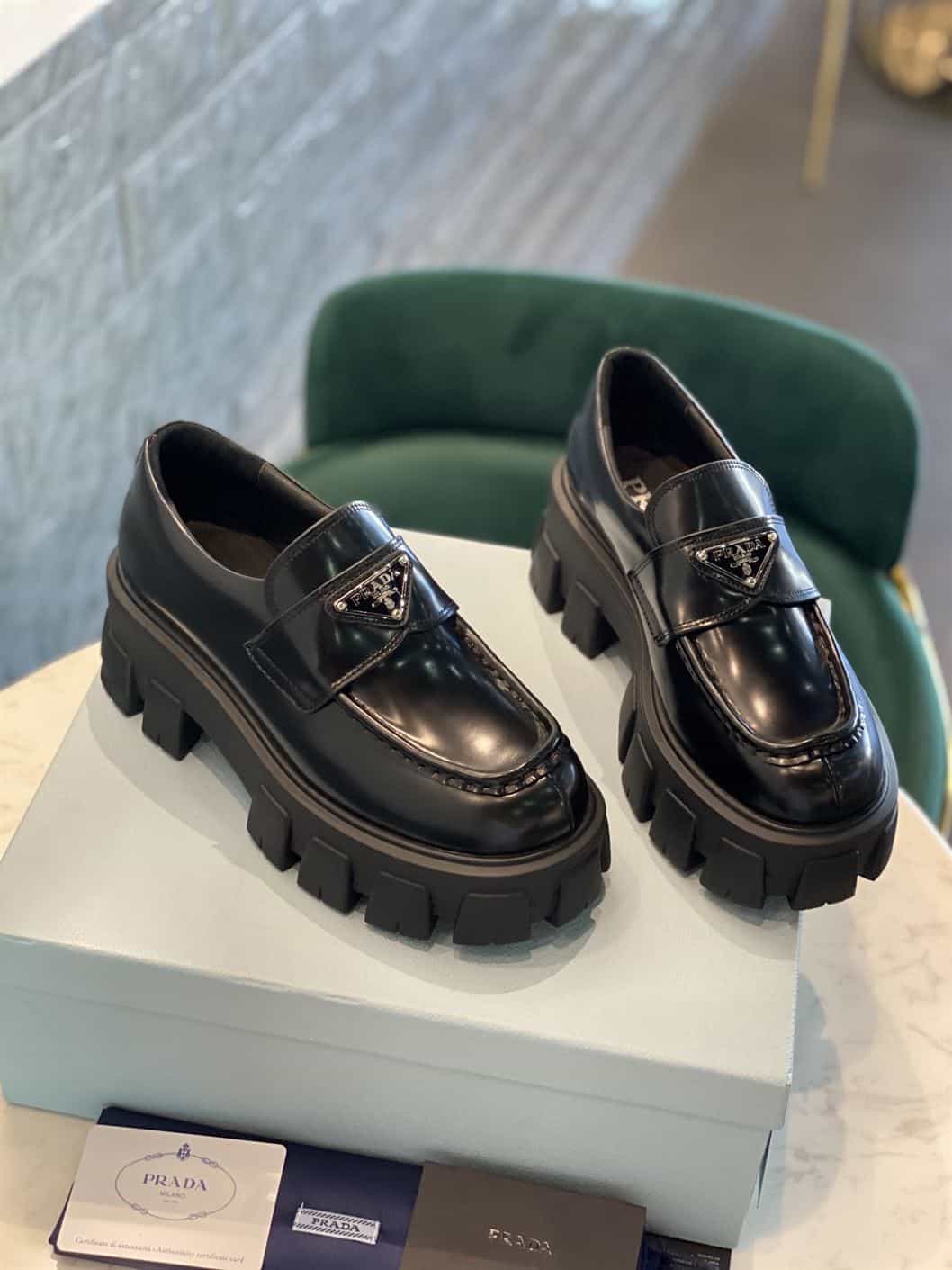 PRADA MONOLITH BRUSHED LEATHER LOAFERS – PRS034