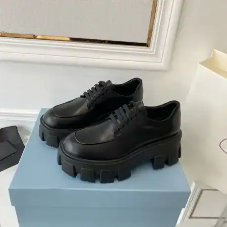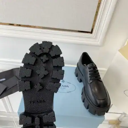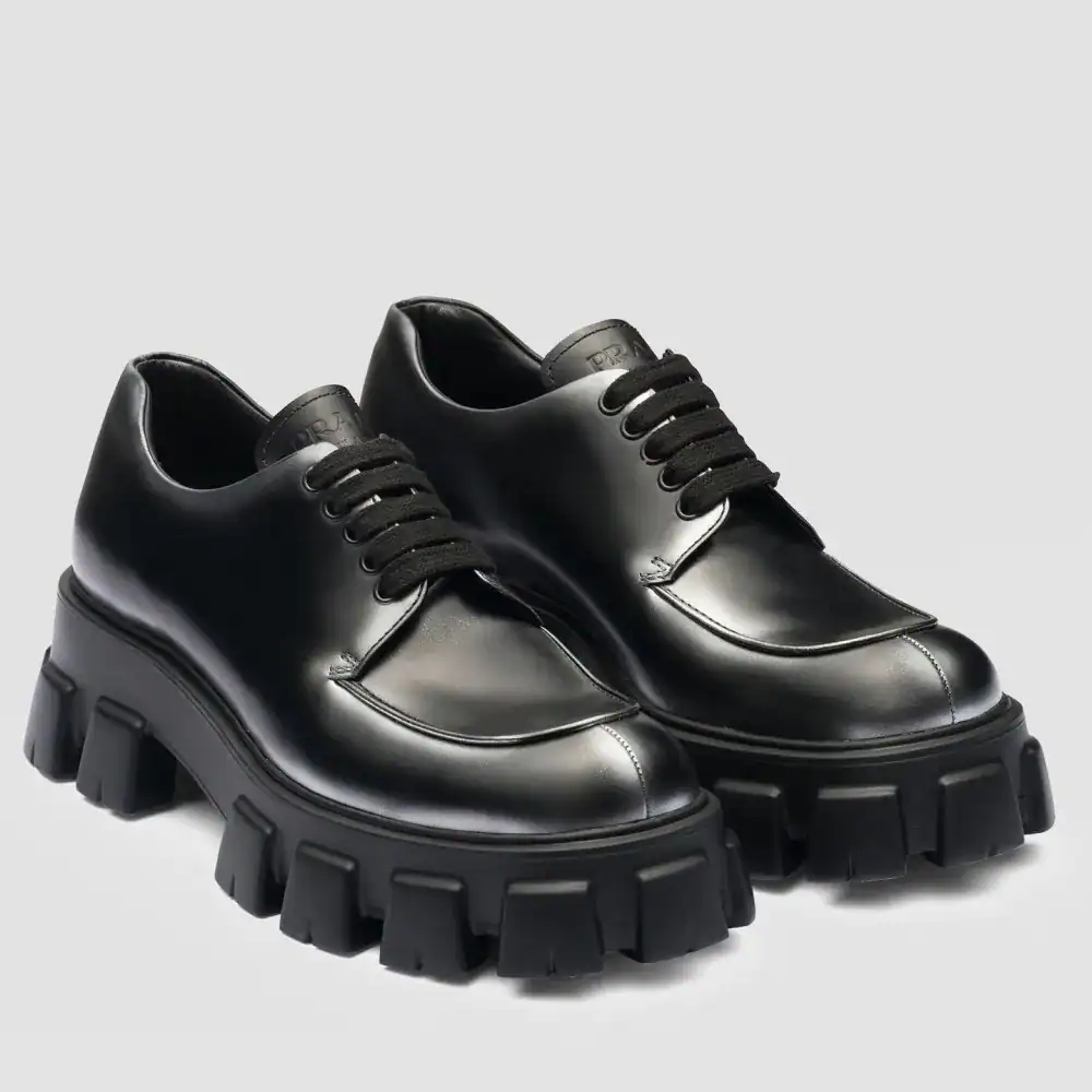 Discover timeless sophistication with the Prada Monolith Lace-up Loafers in Black Brushed Leather (PRL009).