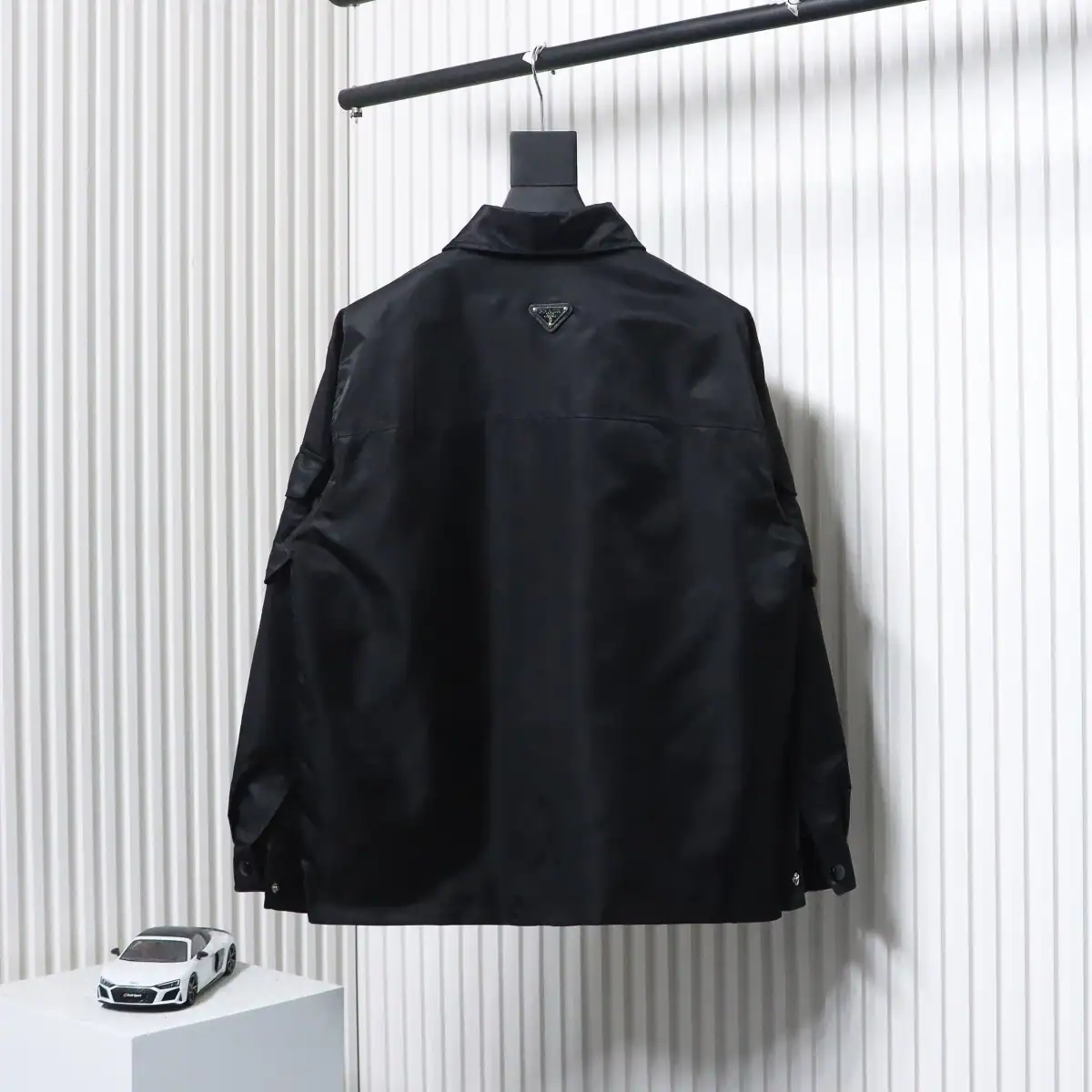 A sleek Prada jacket crafted from premium materials, featuring a clean silhouette and refined details. Its minimalist design blends modern elegance with everyday versatility, making it a timeless statement piece for any wardrobe.