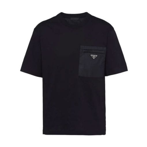 Introducing the Prada Re-Nylon and Jersey T-Shirt, a fusion of sustainable materials and contemporary style. Elevate your wardrobe with this innovative piece from Prada, combining luxury fashion with environmental consciousness.
