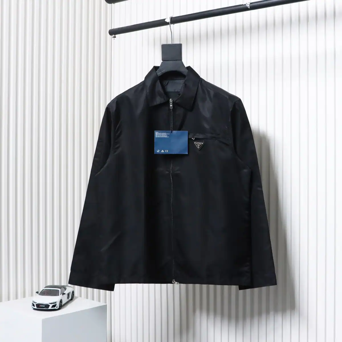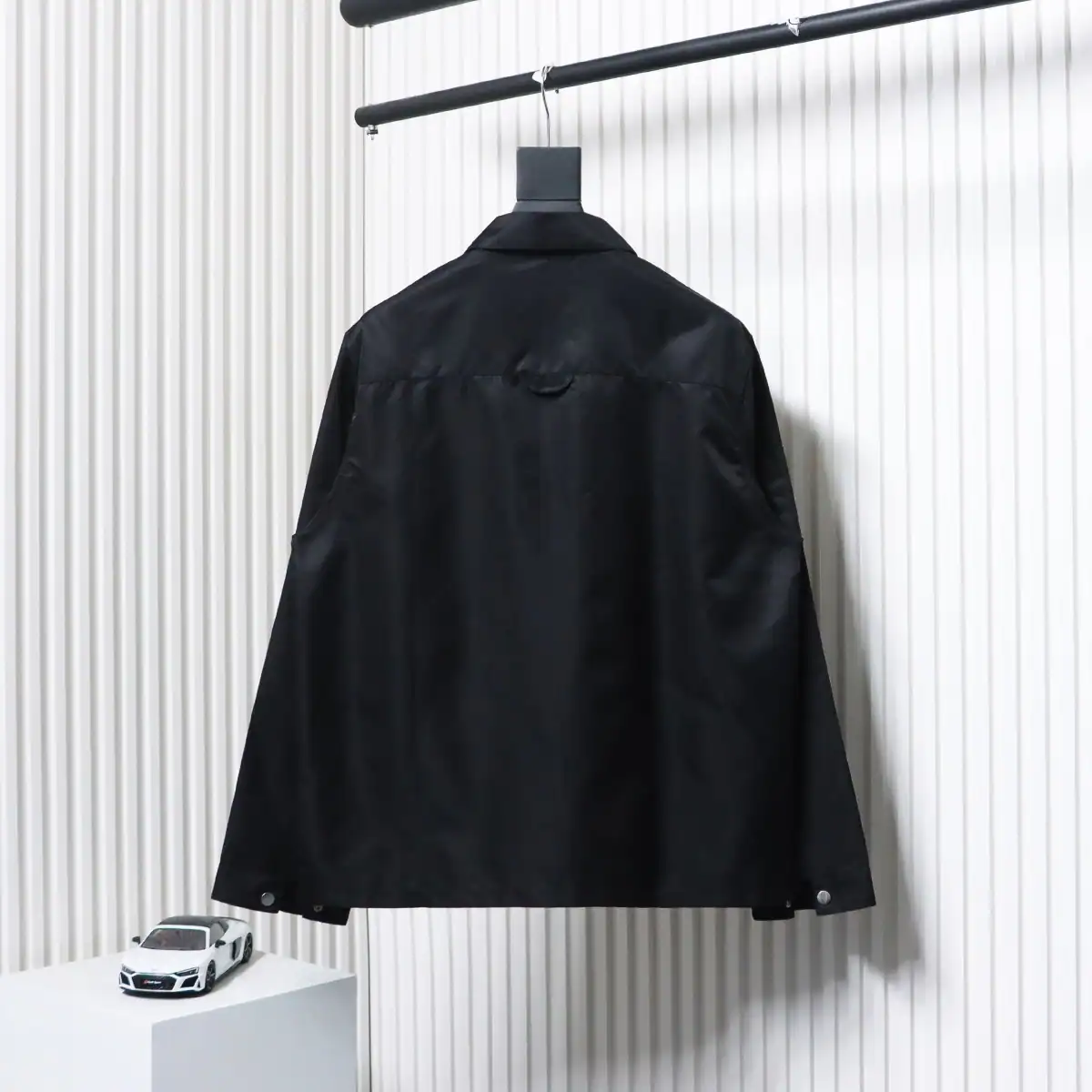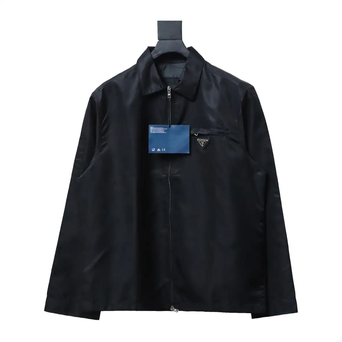 A sleek Prada jacket crafted from premium materials, featuring a clean silhouette and refined details. Its minimalist design blends modern elegance with everyday versatility, making it a timeless statement piece for any wardrobe.