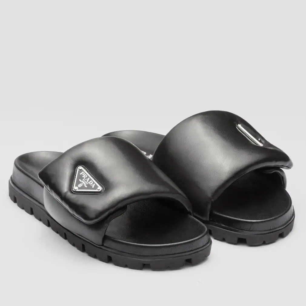 PRADA SLIDES IN BLACK SOFT PADDED NAPPA LEATHER ; PSD079