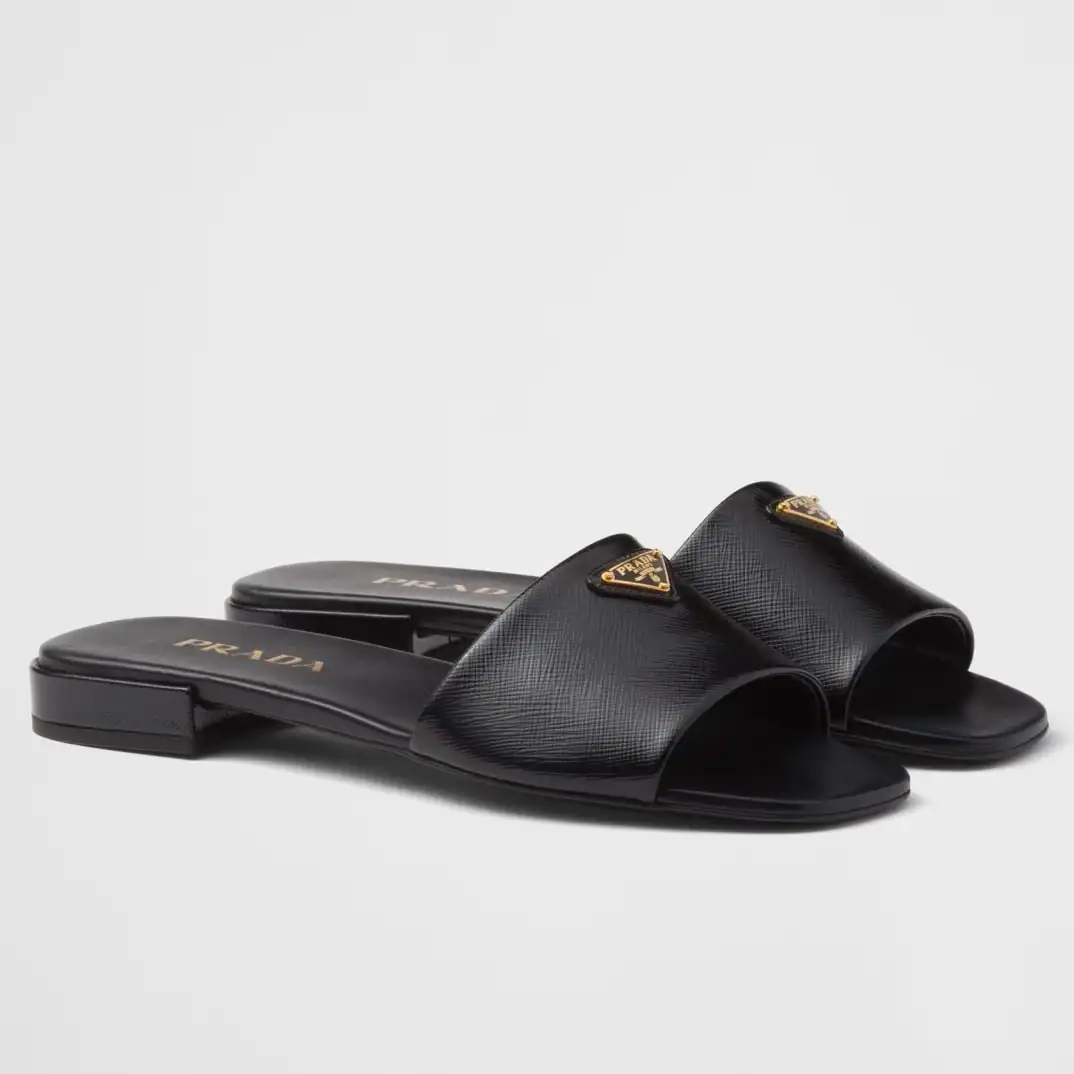 PRADA WOMEN’S SLIDES IN BLACK SAFFIANO LEATHER ; PSD063