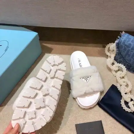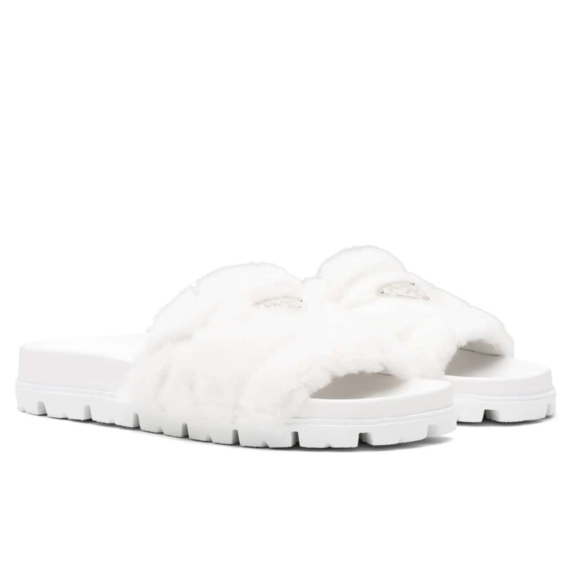 PRADA WOMEN’S SLIDES IN WHITE SHEARLING ; PSD087