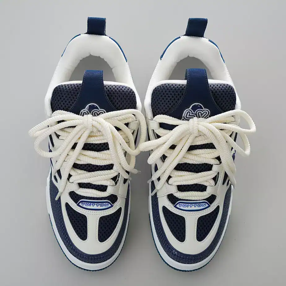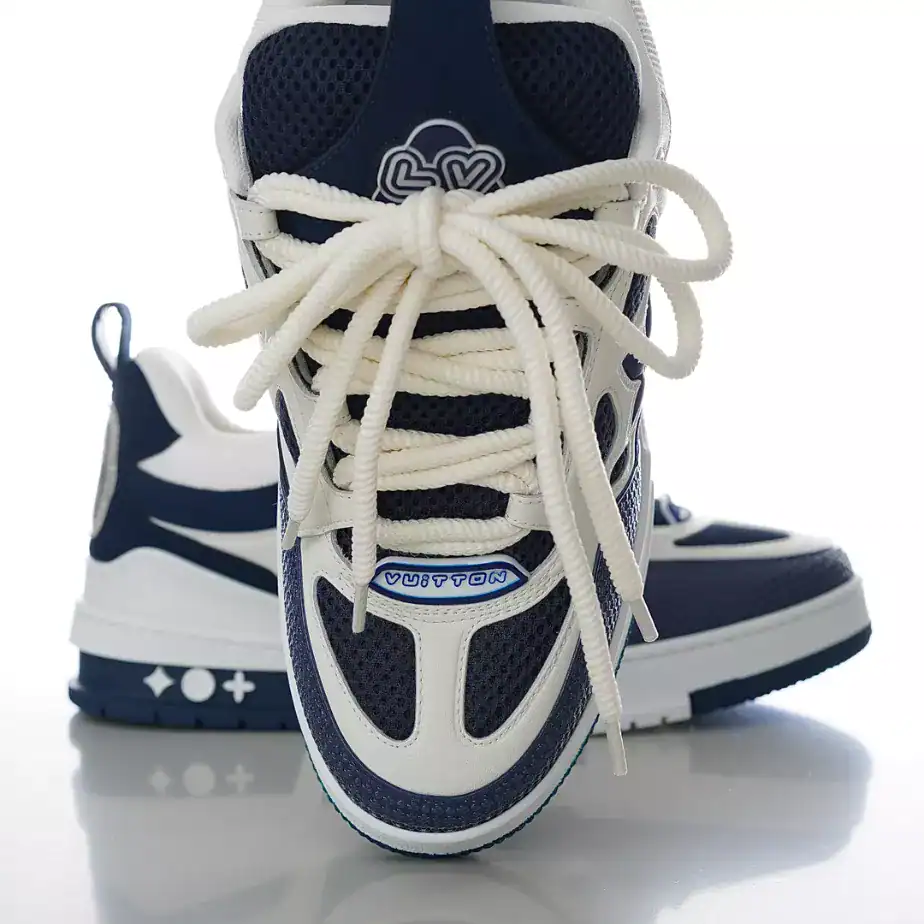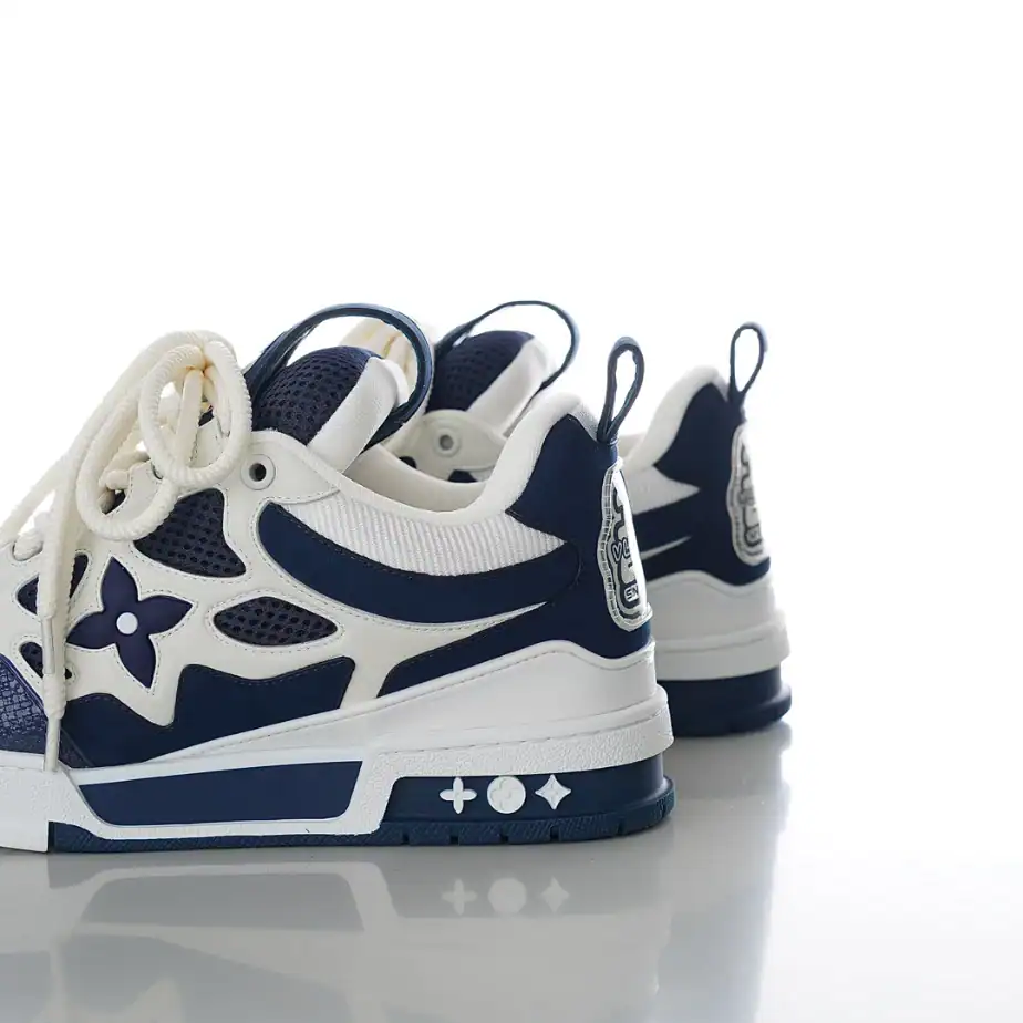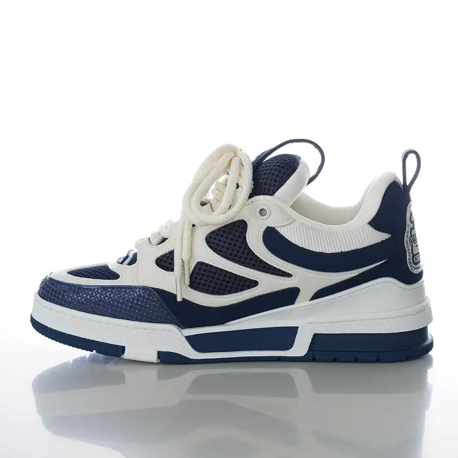 - The LV Skate Sneakers blend luxury craftsmanship with bold, streetwear-inspired design. Crafted from premium materials, including smooth calf leather and technical mesh, these sneakers feature a chunky silhouette reminiscent of classic skate shoes.