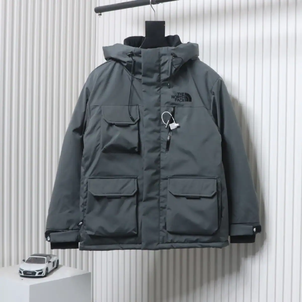 The North Face POLAR Waterproof and Windproof Workwear Multi-pocket Drawstring Hooded Down Jacket Dark Grey ; TNC029
