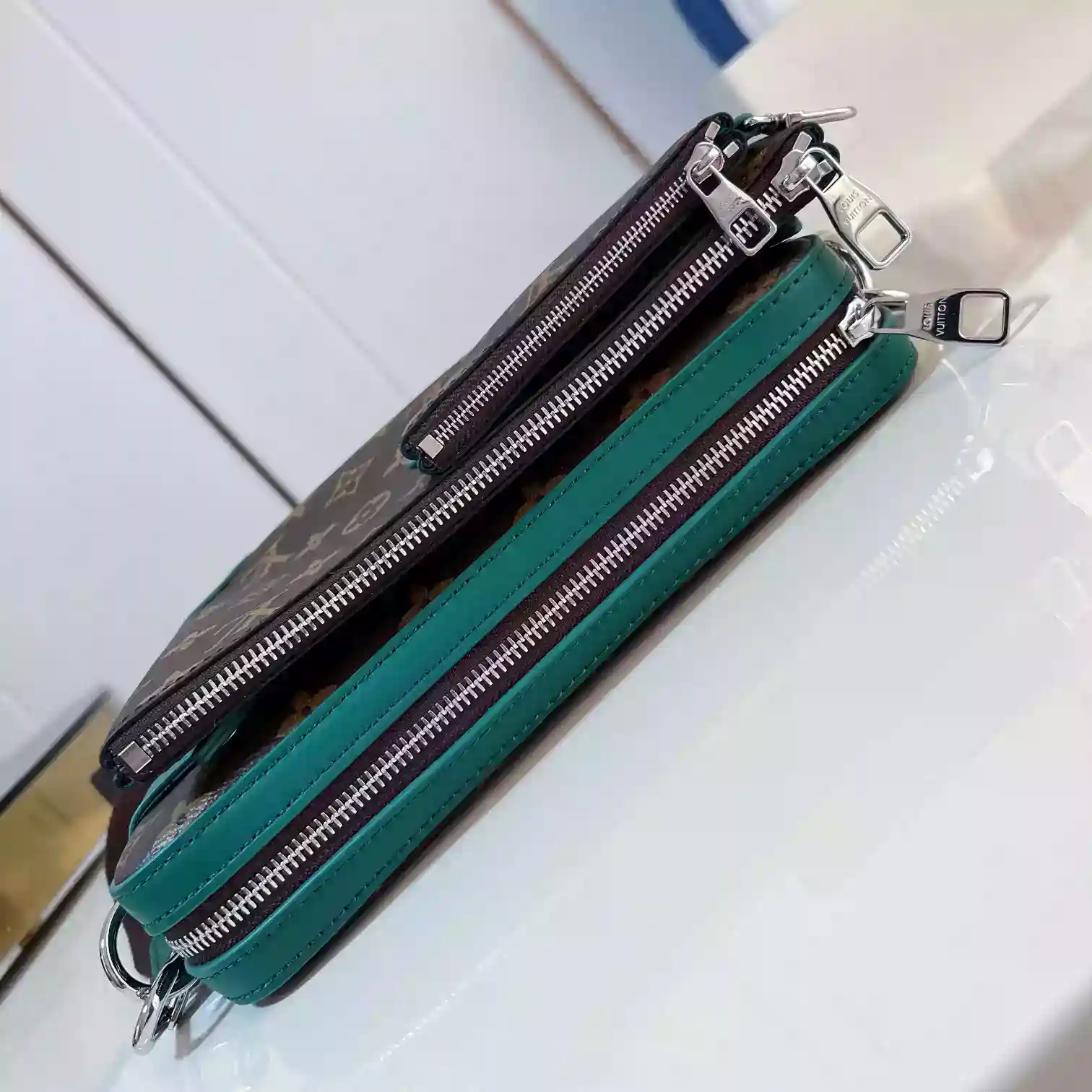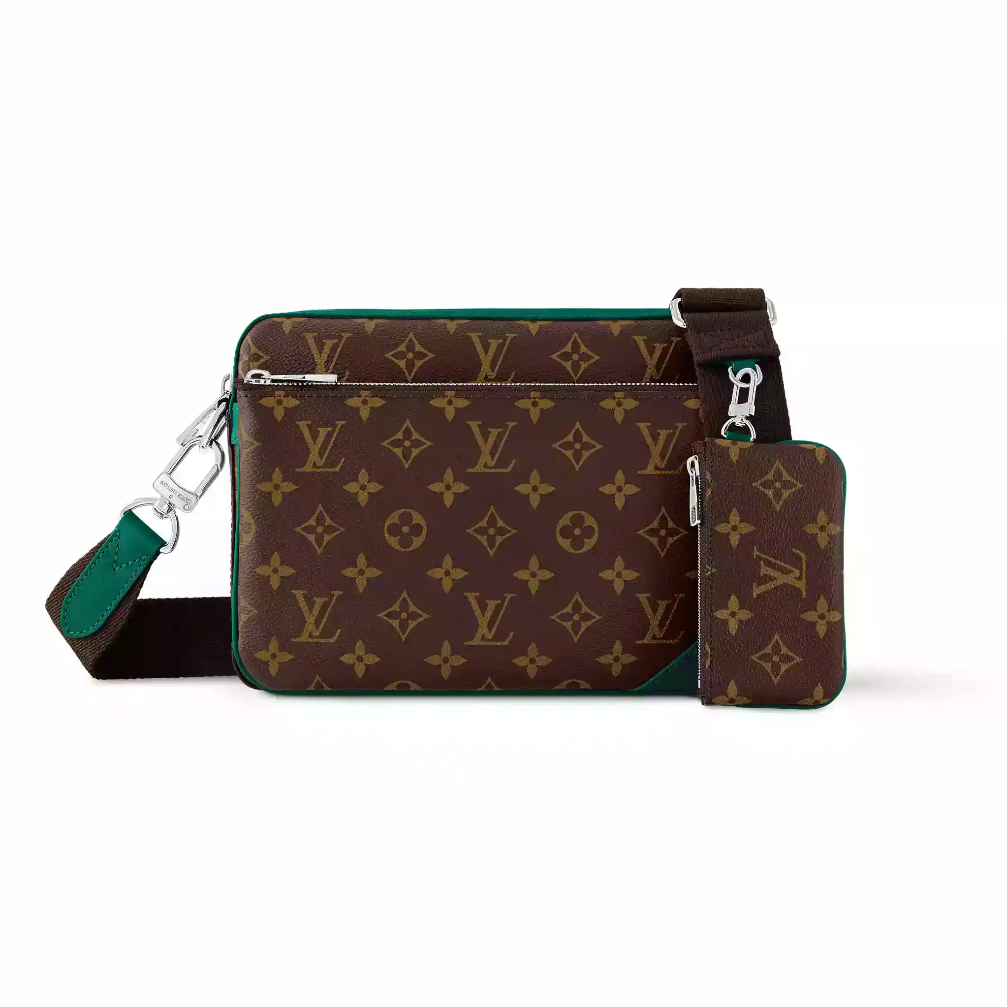 TRIO MESSENGER BAG BORNEO GREEN MONOGRAM MACASSAR M12766 ; LW294