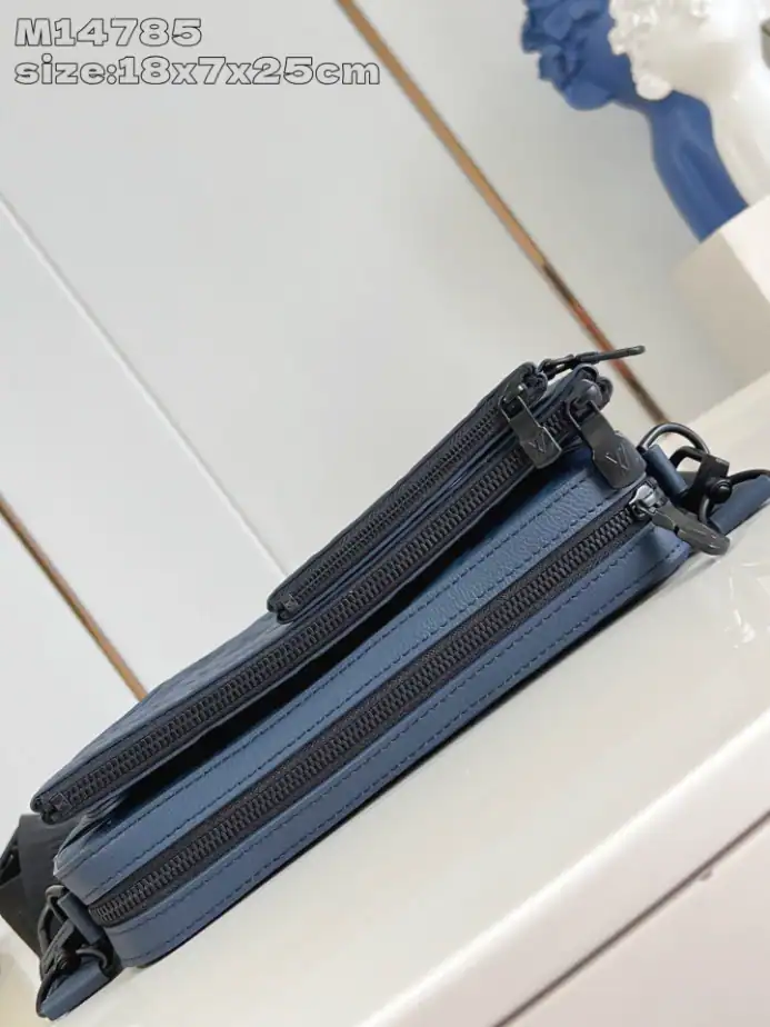 TRIO MESSENGER BAG NAVY BLUE MONOGRAM SHADOW M14785 ; LW265