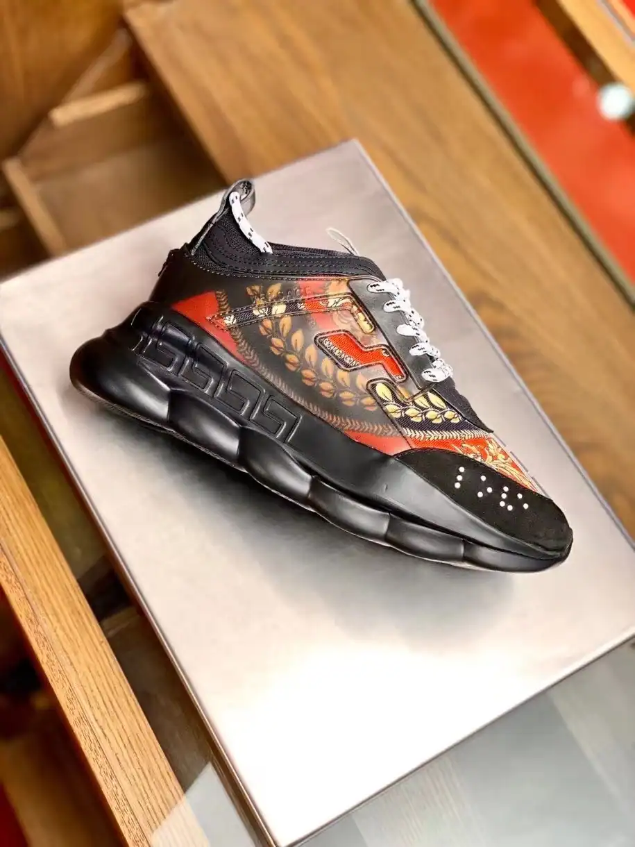 VERSACE WOMEN’S BLACK CHAIN REACTION SNEAKERS WITH BAROQUE PRINT ; VSS025