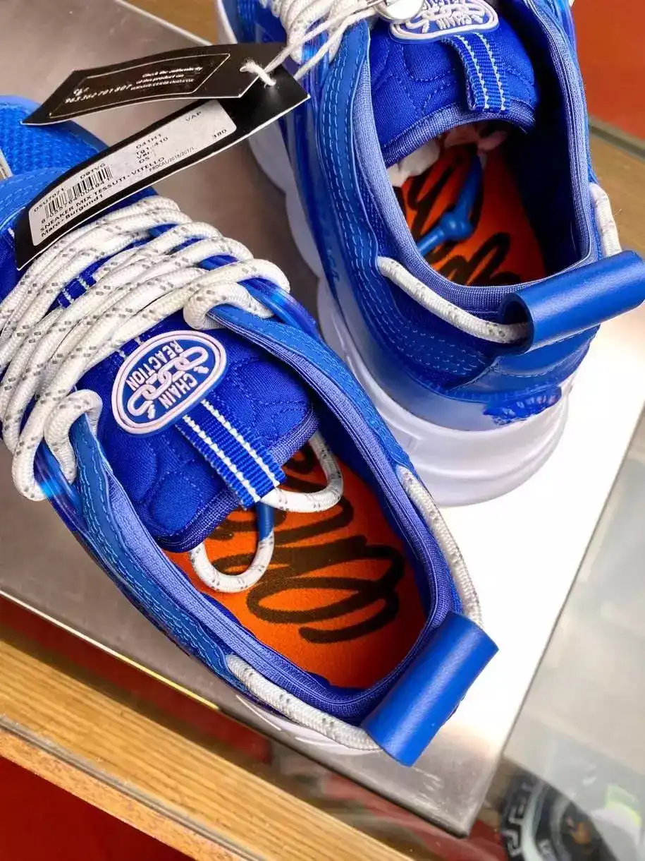 VERSACE WOMEN’S CHAIN REACTION SNEAKERS IN BLUE MESH ; VSS026
